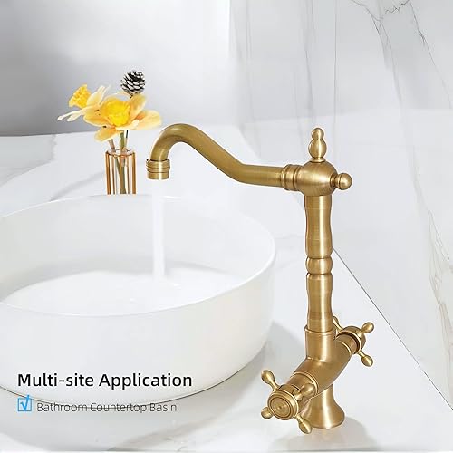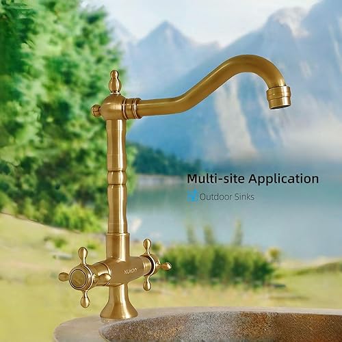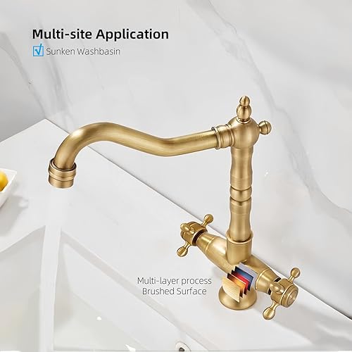 NIUKOMY Rubinetto Lavello Cucina in Ottone Antico, Retrò Miscelatore Lavabo Bagno Alto in Bronzo, Girevole a 360° Rubinetti Cucina Nostalgia a Due Maniglie