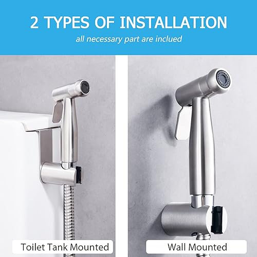 Doccetta Bidet a Mano, Doccetta in acciaio inox per WC, con incluso Adattatore a T, Tubo da 1.5M e staffa di supporto, ideale per l'igiene personale quotidiana (B)