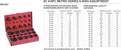 Kit o-ring, assortimento di guarnizioni a rondella, set con 32 misure, in gomma nitrilica di livello ingegneristico (NBR/Buna), ideale per lavori idraulici e di manutenzione, 419 pezzi