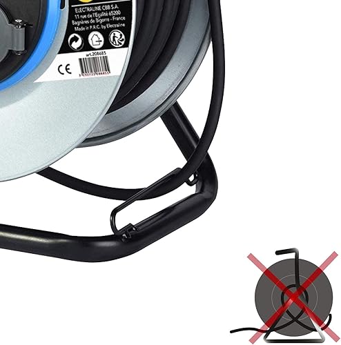 Electraline 208690 208690-Prolunga elettrica in Metallo, 50 m, 4 Prese con Guida per Il Cavo, Piastra Fissa e Impugnatura ergonomica, Grigio