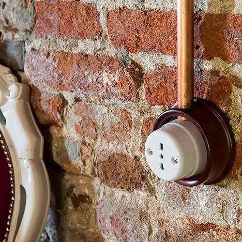 FANTON Presa elettrica bipasso italiana vintage in ceramica colore bianco 2P+T 16A da parete in porcellana installazione cavo tessile stile retrò 84010