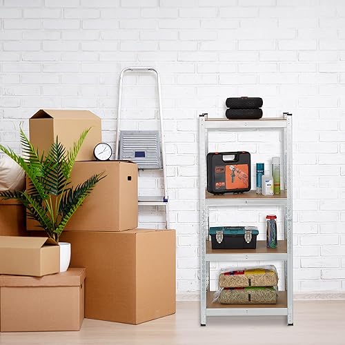 Relaxdays Scaffale Alta Portata in Acciaio Zincato, HLP: 138x60x40 cm, Carico 200 kg, per Garage e Cantina, Argentato, Inox