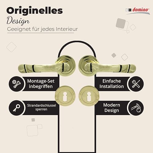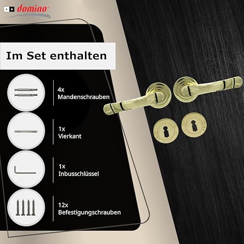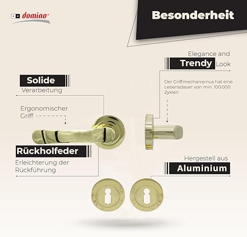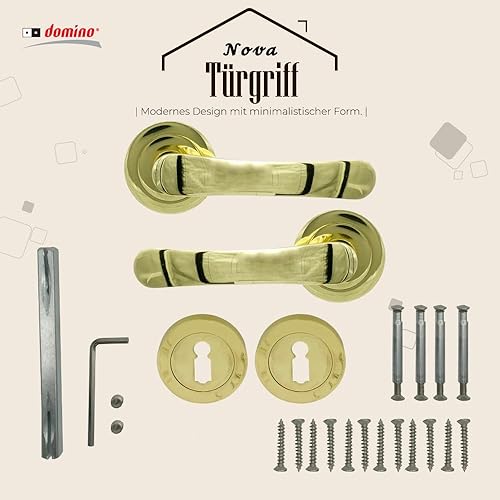 domino NOVA-R M1 - Maniglia per porta d'ufficio, cantina e porta interna, in alluminio, in ottone lucido