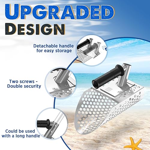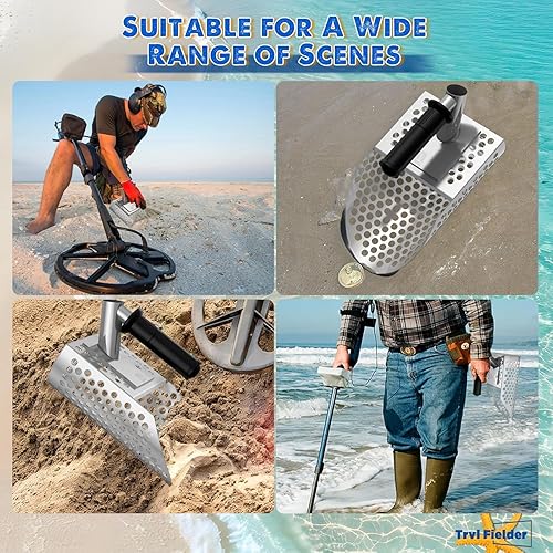 Paletta per sabbia con manico lungo, paletta per rilevamento di sabbia in metallo con manico lungo, paletta per sabbia da spiaggia in acciaio inossidabile palmare con manico lungo in