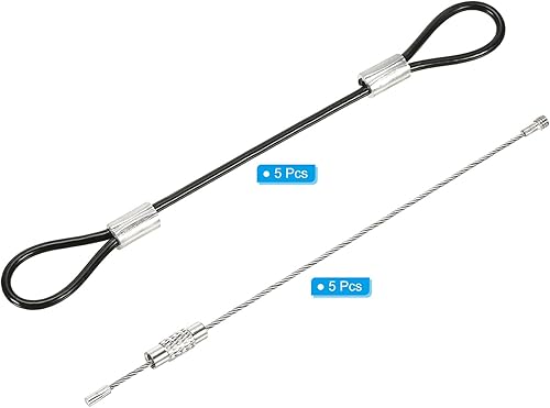 PATIKIL 0. 3Ft Sicurezza Cavo Blocco, 5pz Inossidabile Acciaio 2mm Dia Sicurezza Filo Corda con Doppio Ring Avvitato Filo Cavo per Stadio Illuminazione Bagagli Blocco Nero