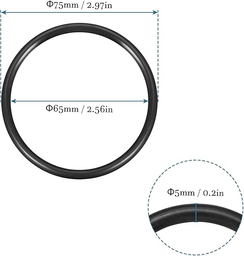 75mm x 65mm x 5mm Nitrile Gomma O-ring x 10pz Rotondo Guarnizione Rondella per Rubinetto Idraulica Riparazione Sigillatura Connessione [Nero]