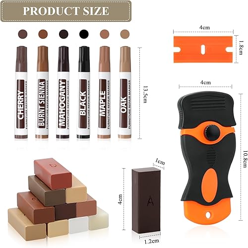 Kit riparazione mobili in legno,20 pezzi set di riparazione per parquet in legno,11 colori per mastice per legno laminato,pennarelli per ritocchi,Ripristina eventuali graffi crepe fori per pavimenti