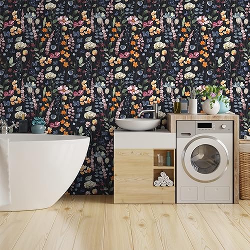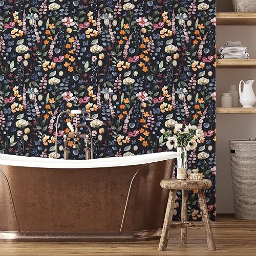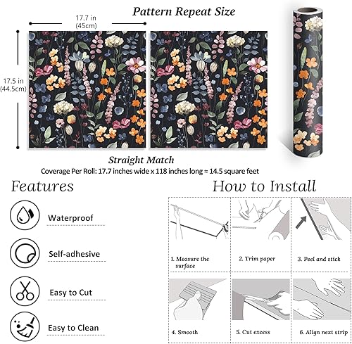 VEELIKE Carta da Parati Foglie Nera 44.5cm×900cm Carta Adesiva Fiori Vintage Pellicola Adesiva per Mobili Floreale Rotolo Adesivo per Mobili Rivestimento Parete Cameretta Salotto Cucina Lavabile