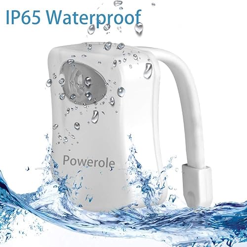 Powerole Luce Notturna WC LED Lampada Sensore Movimento,Alimentato da Batteria Impermeabile Luce Notturna, Luce WC per Bagno, 8 Cambiamento di Colori