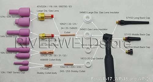 RIVERWELD TIG Collet Bodis 10N24 10N32 (2,4 mm) Kit di dimensioni assortite adatto per SR DB PTA WP 17 18 26 Torcia per saldatura TIG 10 pezzi