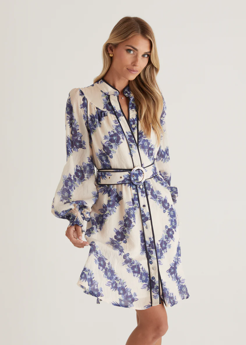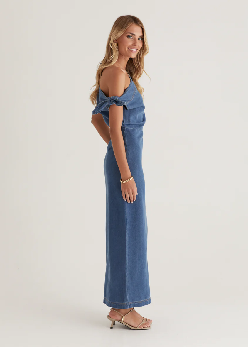 Sicilian One Shoulder Midi Dress - Mid Blue