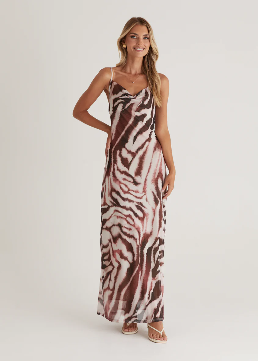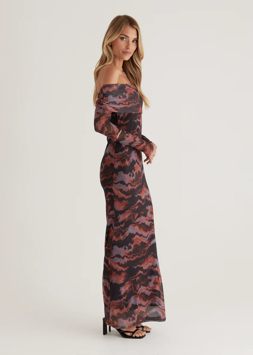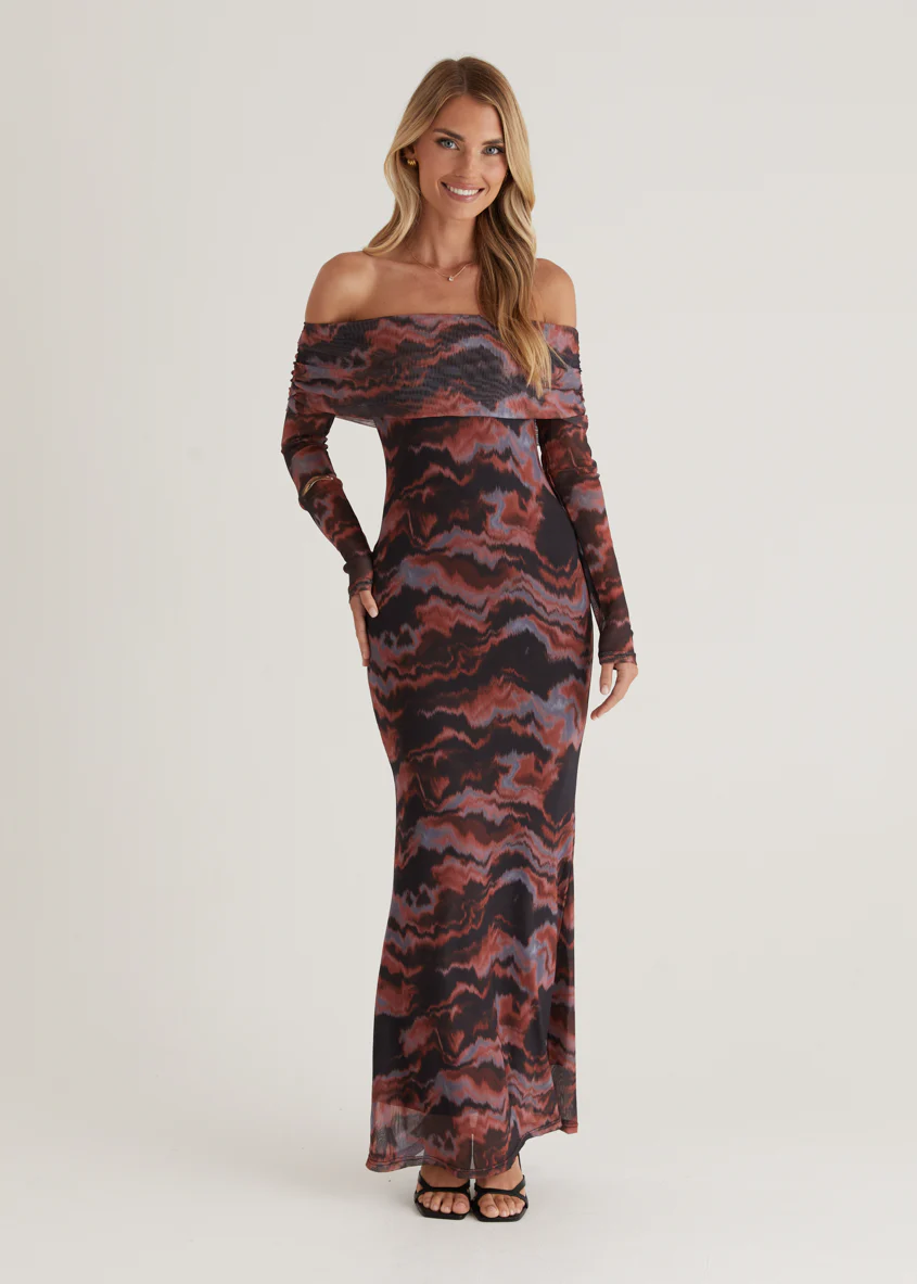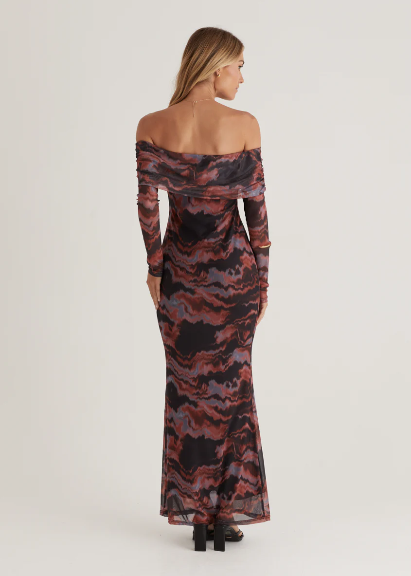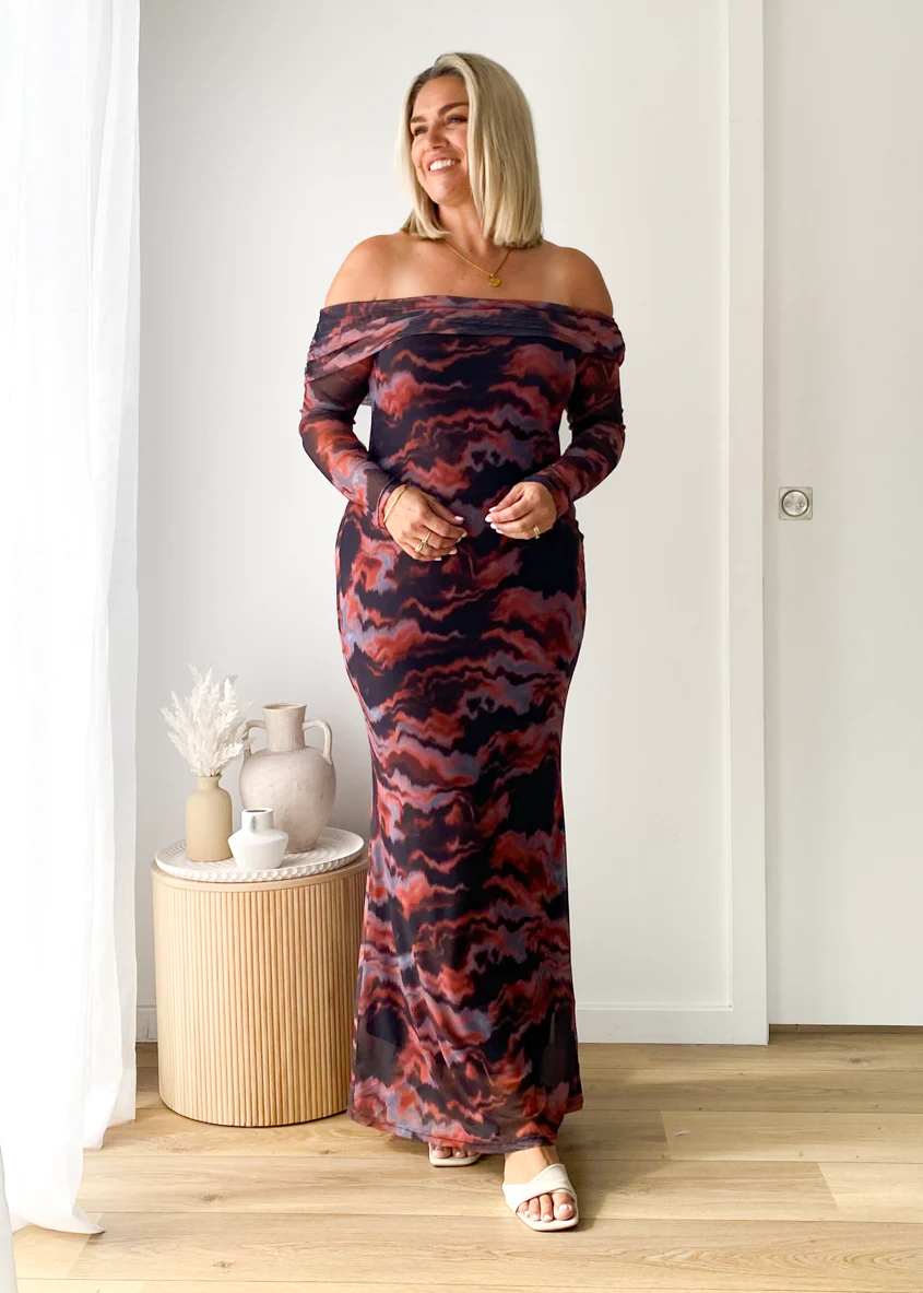 Sienna Mesh Off Shoulder Maxi Dress - Black Tie Dye