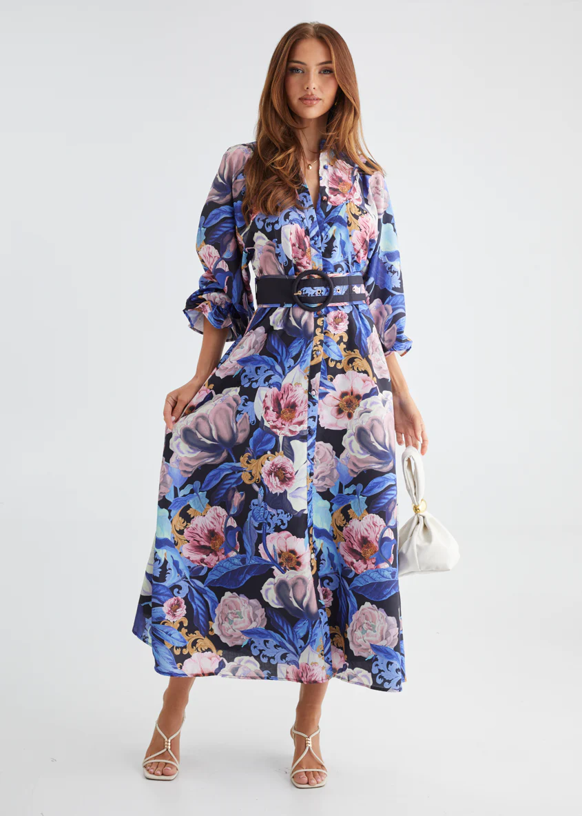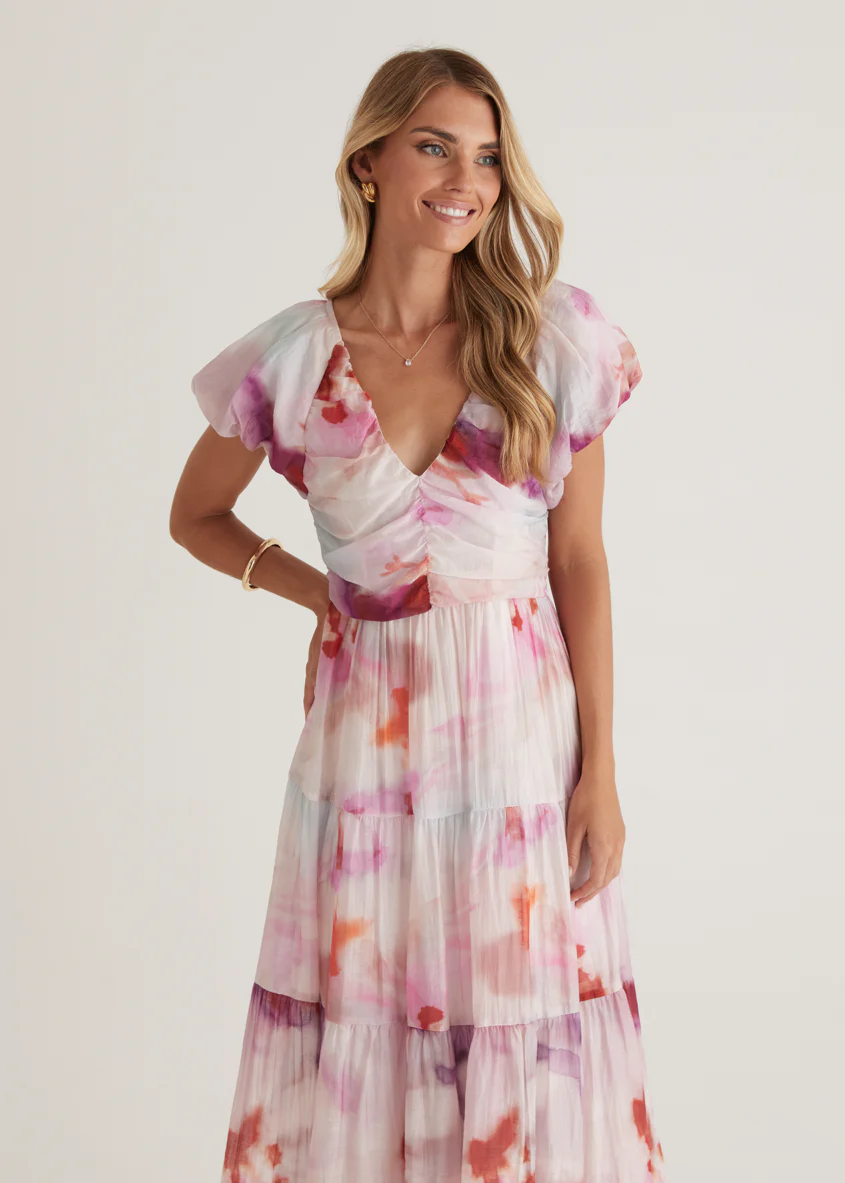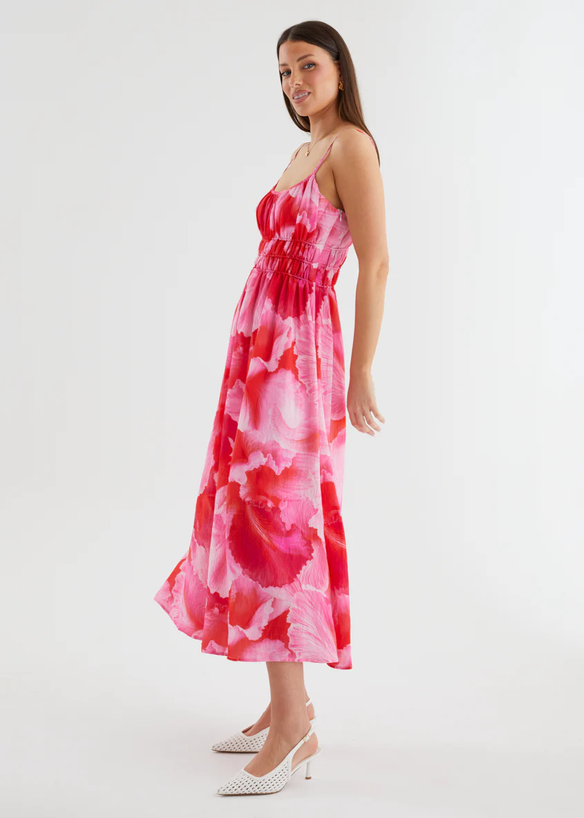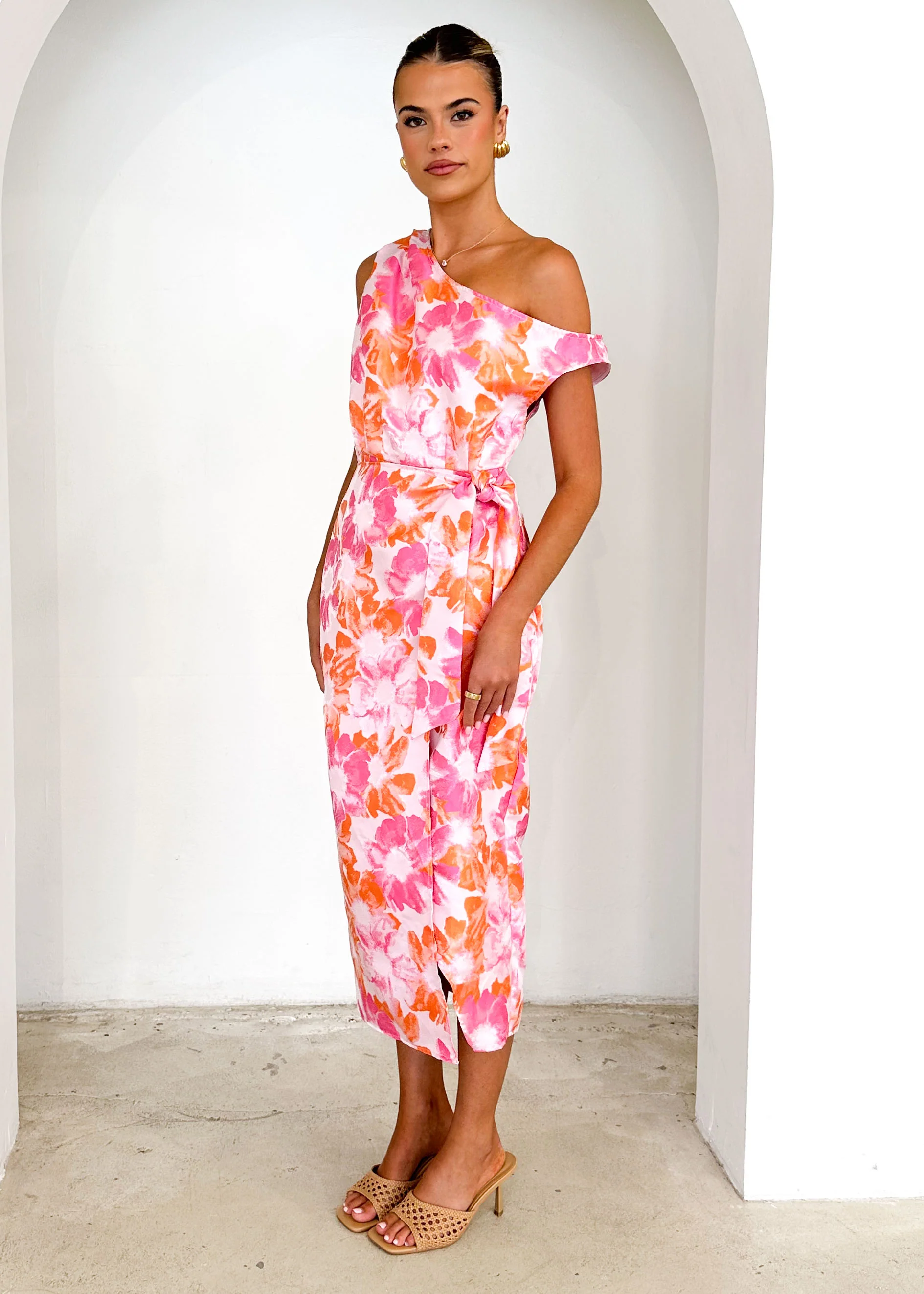 Sansara One Shoulder Midi Dress - Sunset Floral