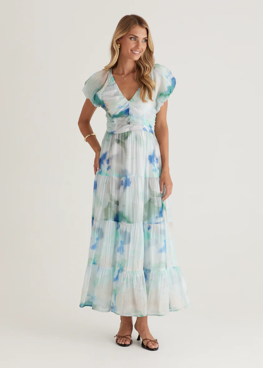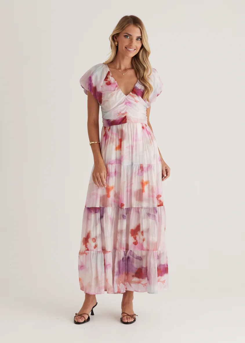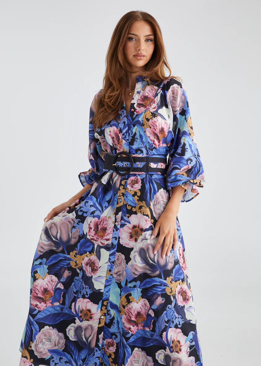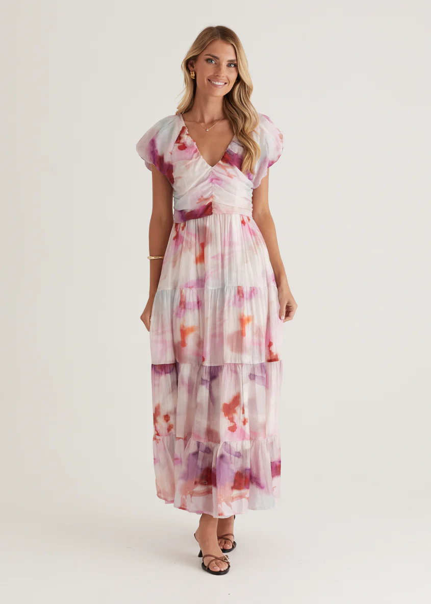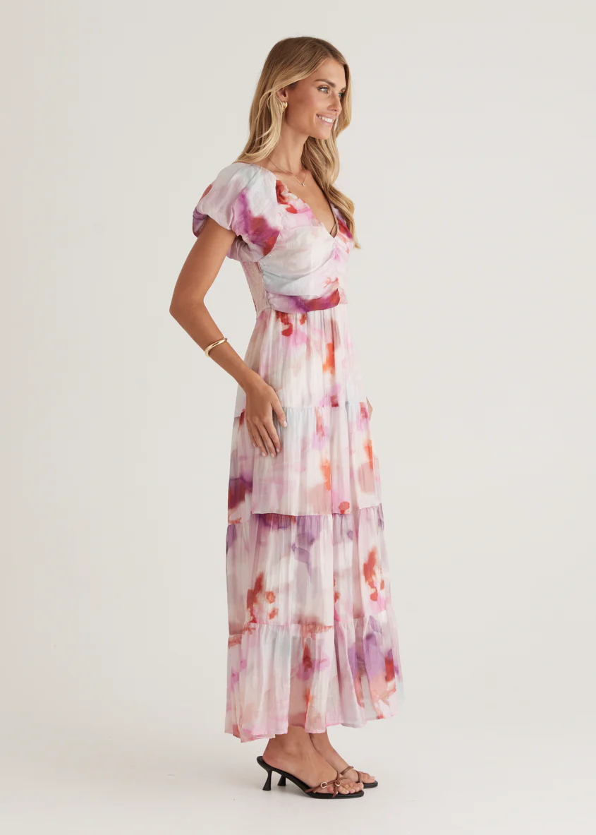 Sansara One Shoulder Midi Dress - Sunset Floral