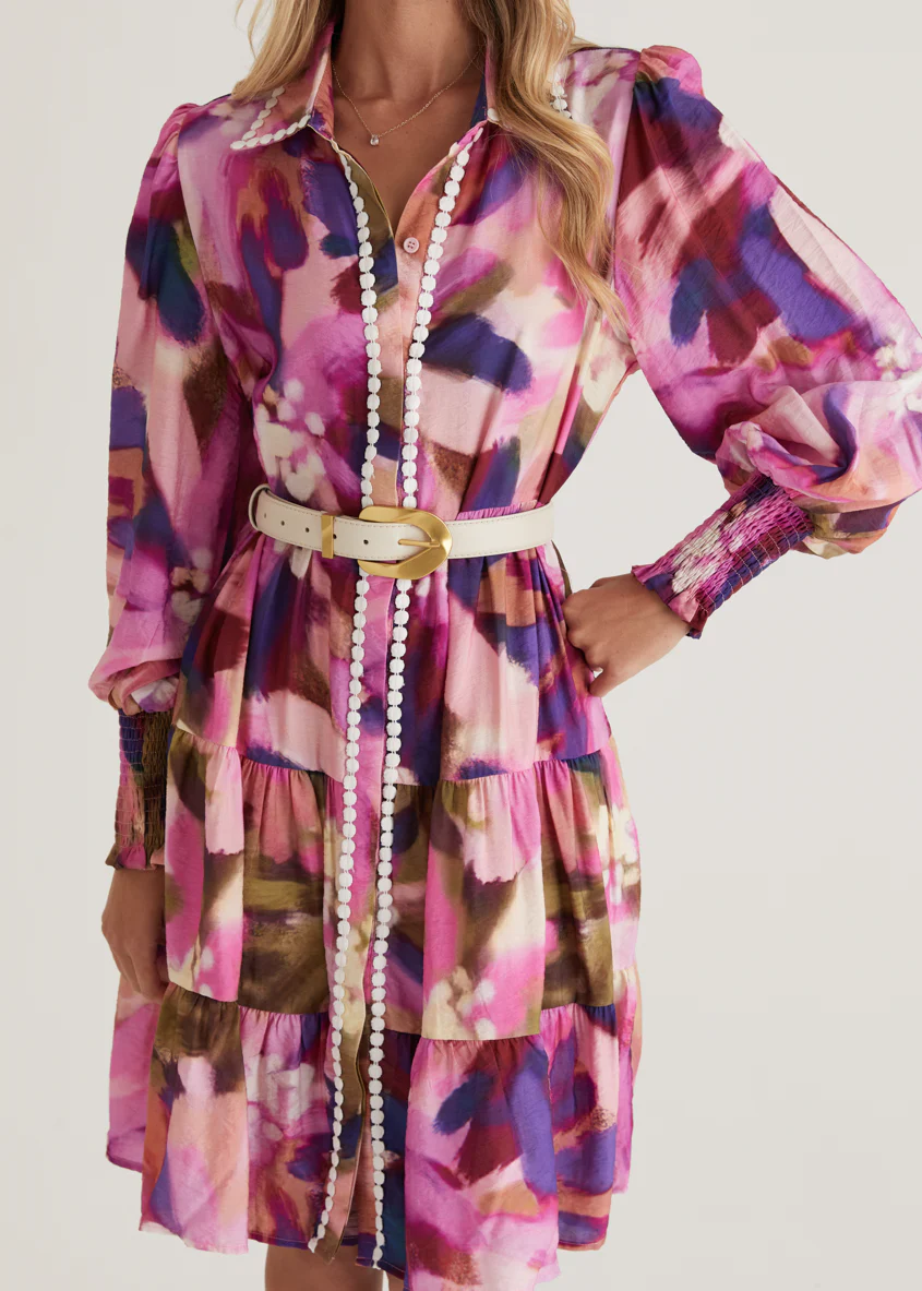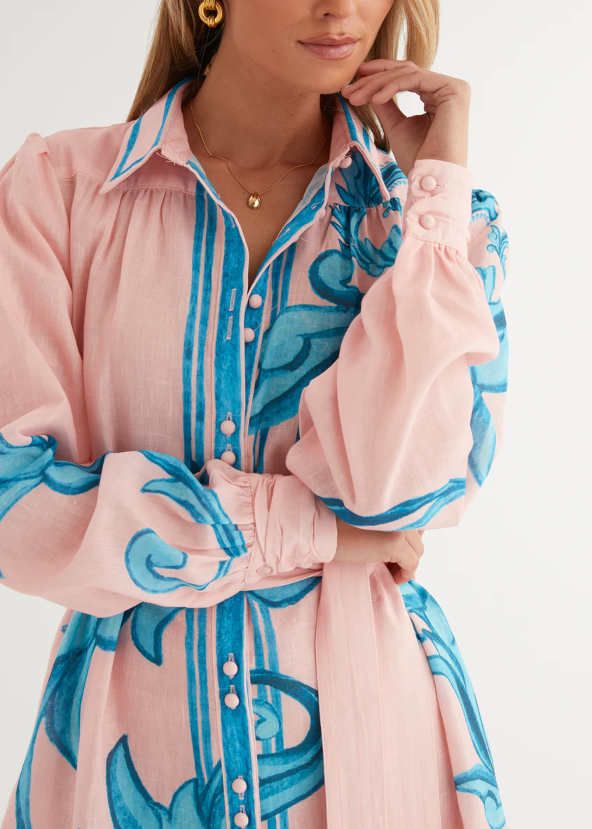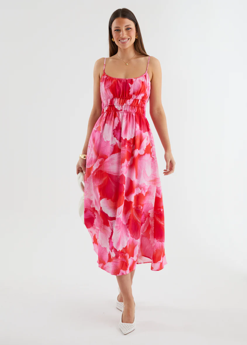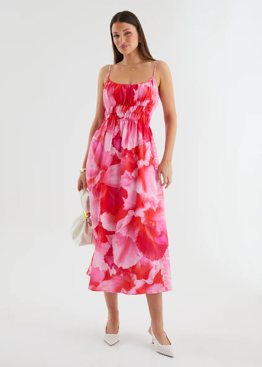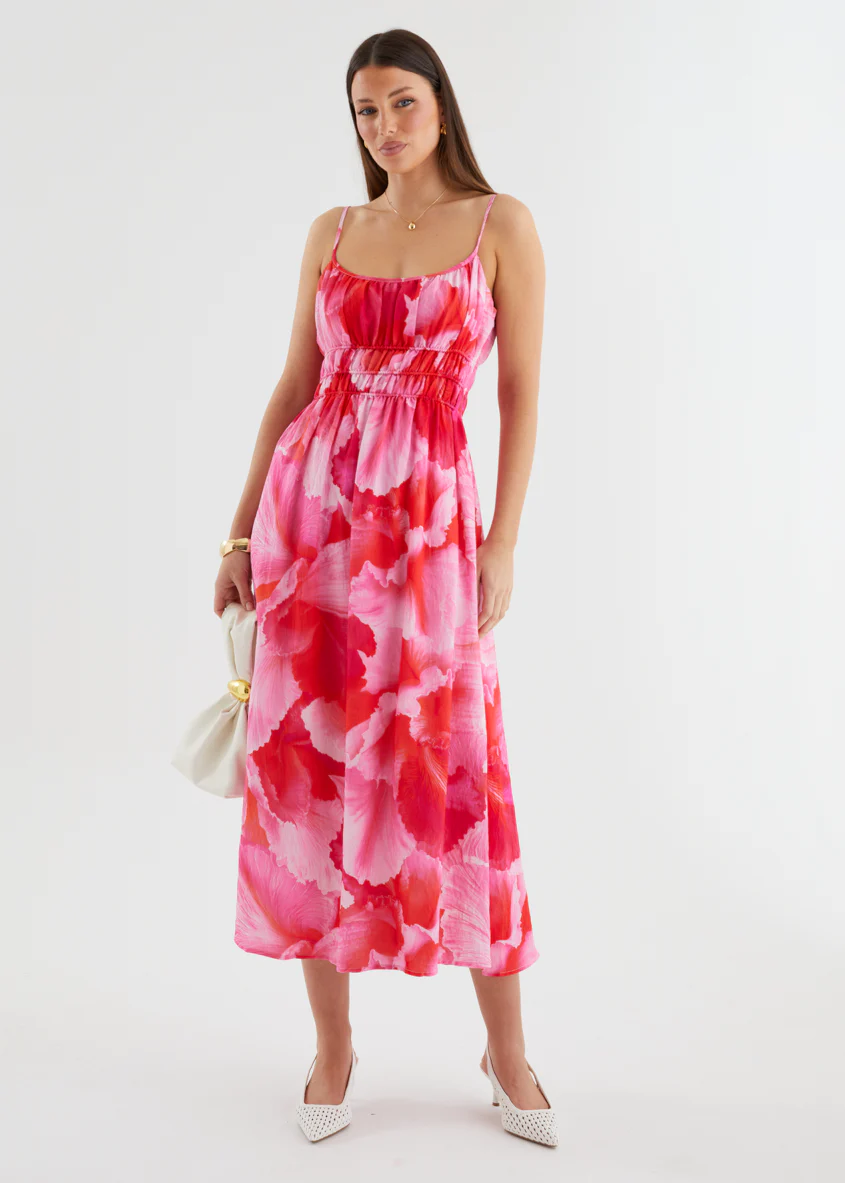 Salina Off Shoulder Midi Dress - Pink Flowers