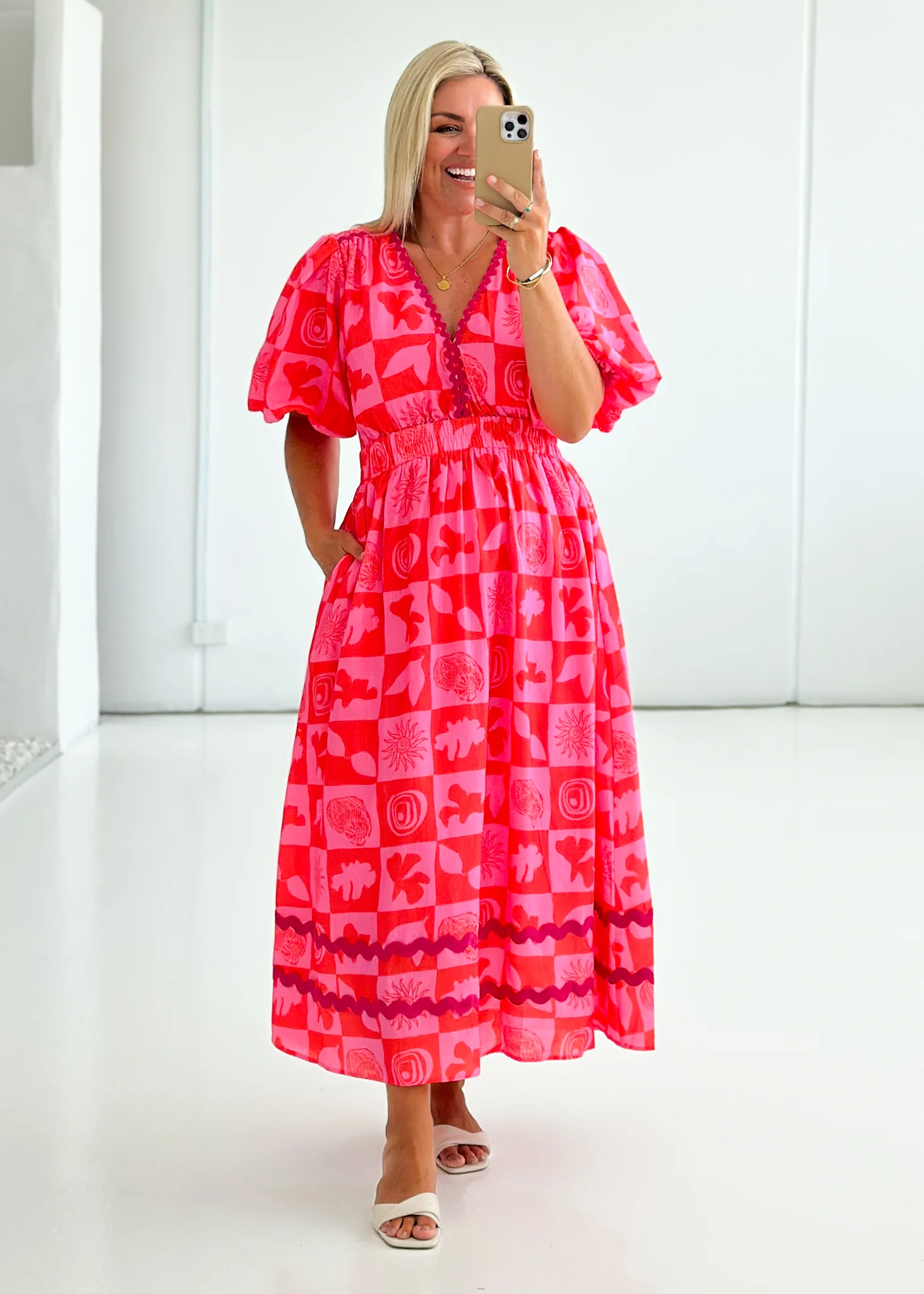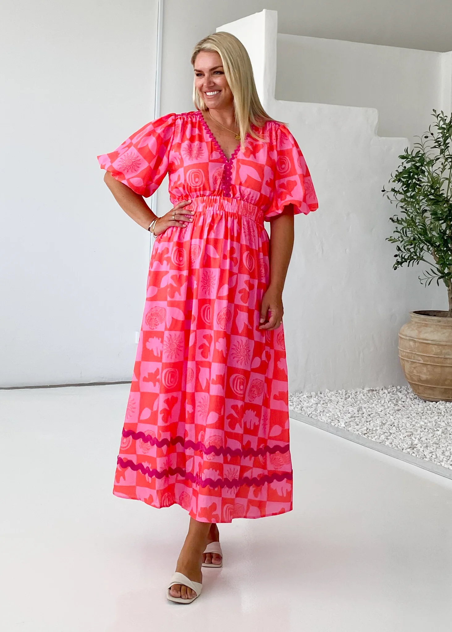Pamela Mesh Maxi Dress - Plum Tie Dye