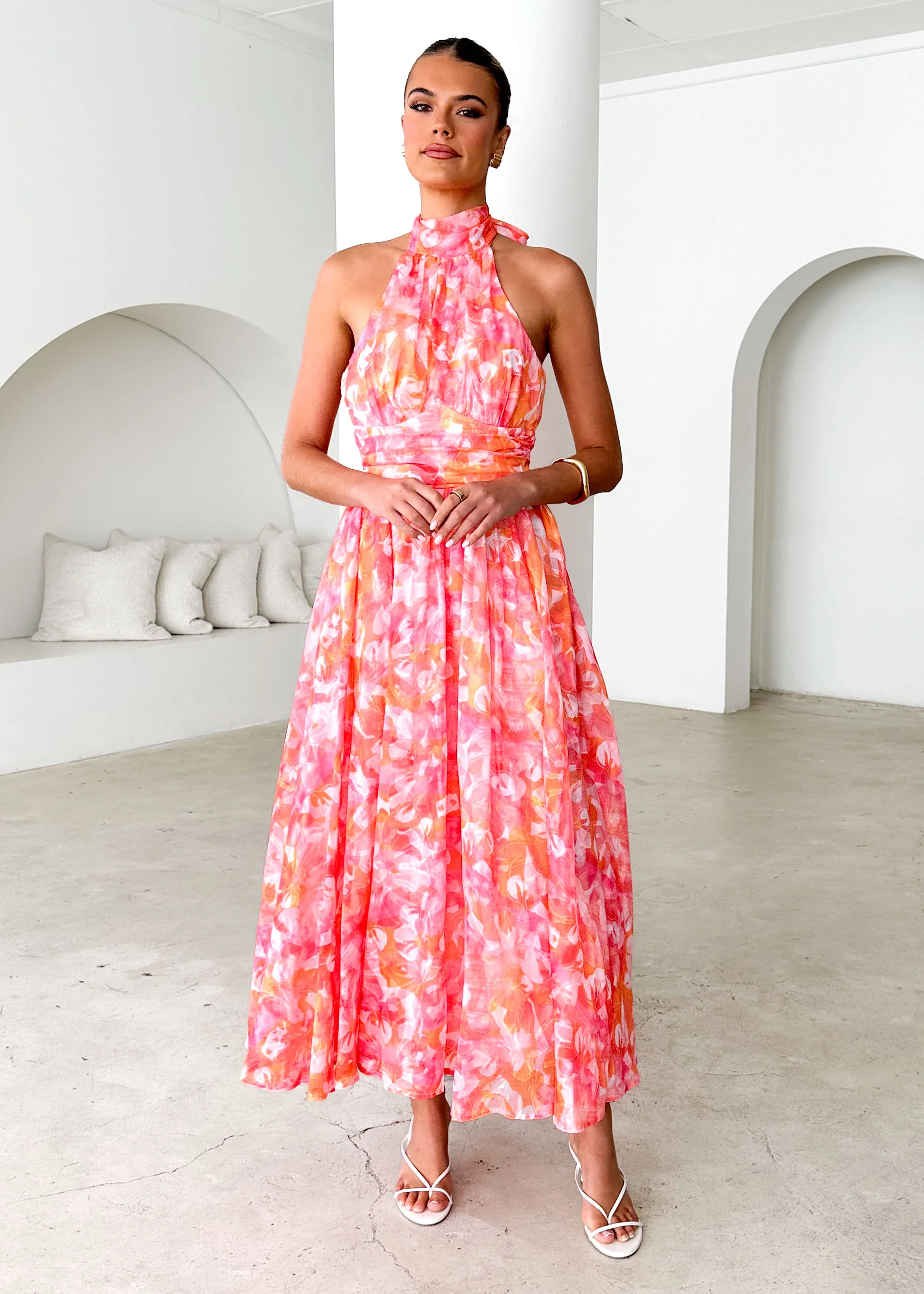 Ohio Halter Maxi Dress - Pink Splash