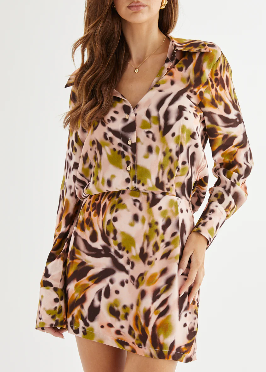 Odesza Maxi Dress - Olive Abstract