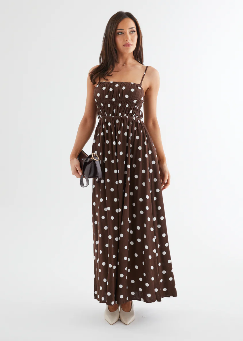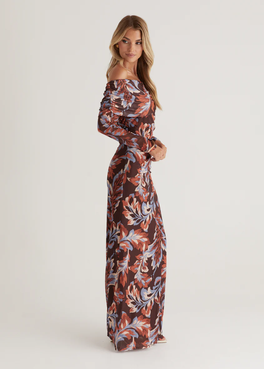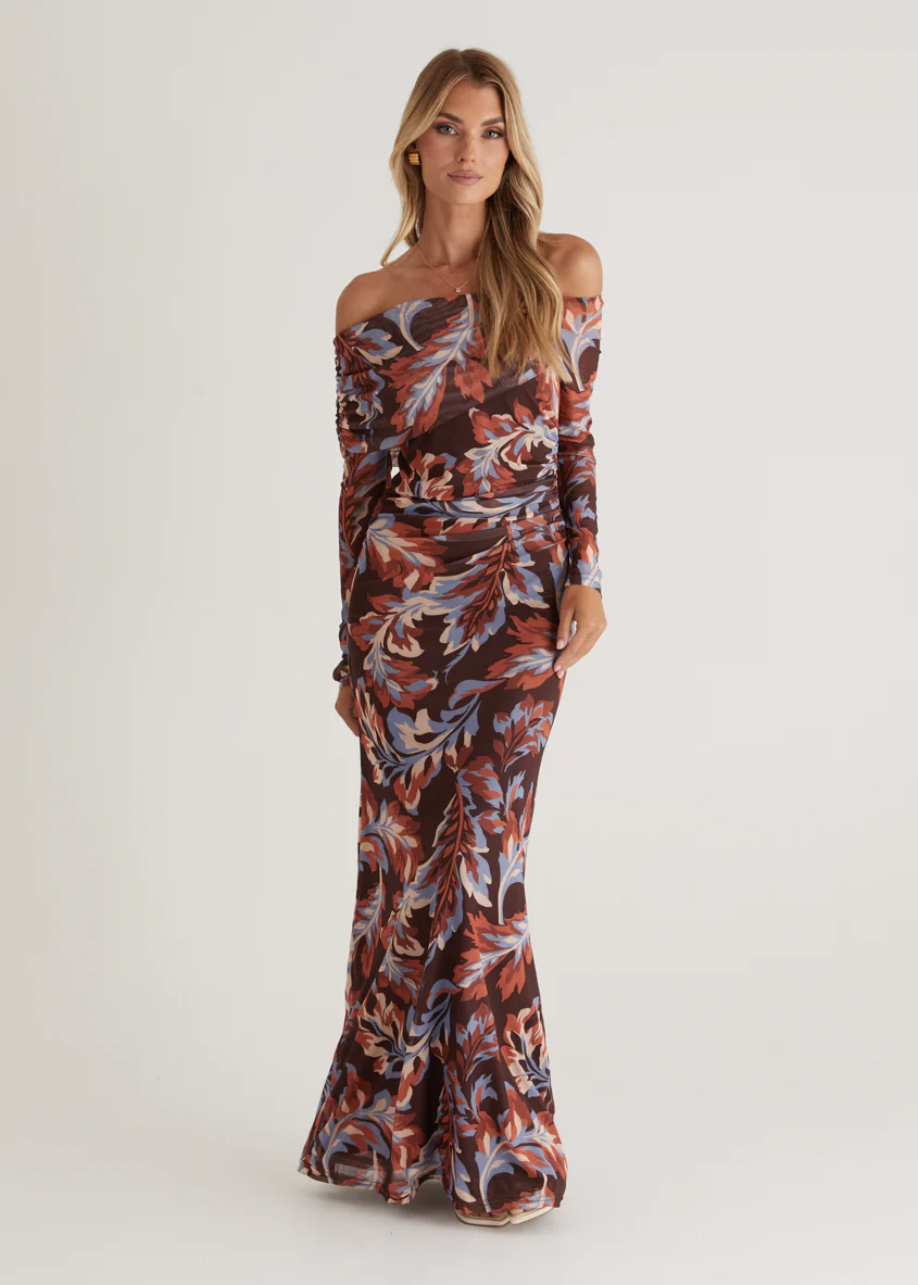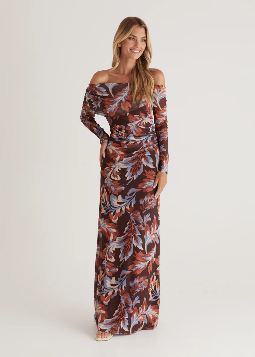 Nix Off Shoulder Maxi Dress - Choc Swirl