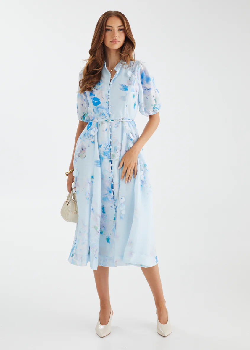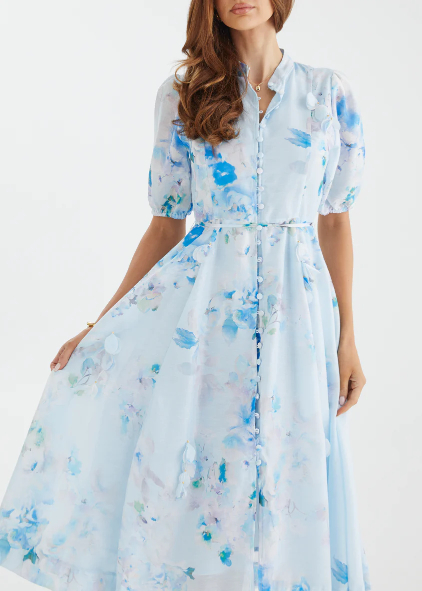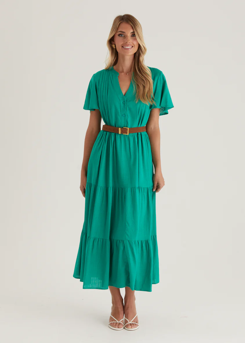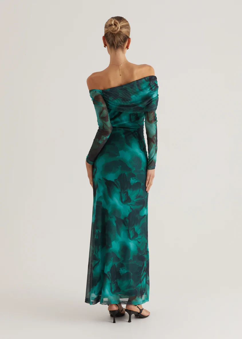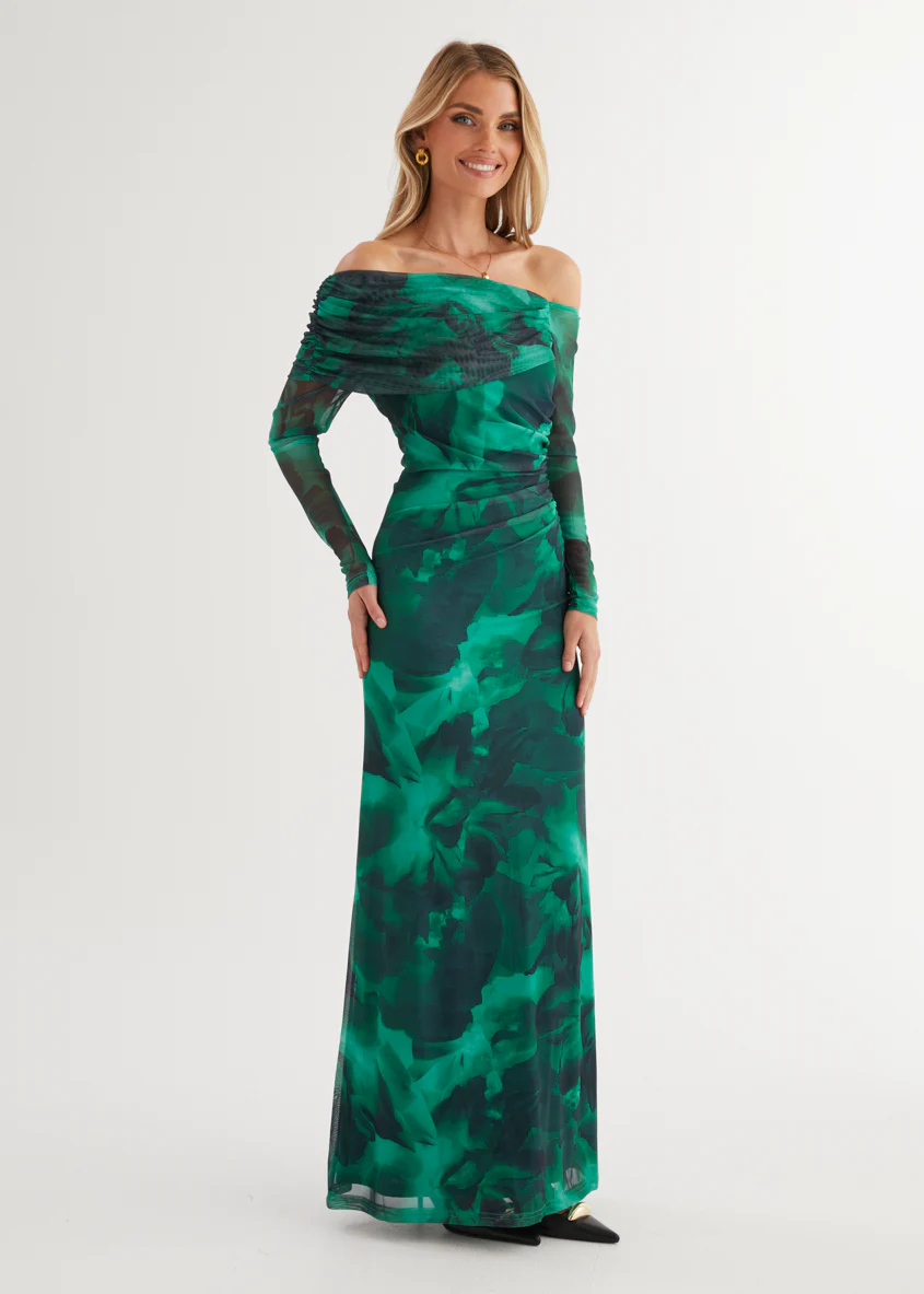 Nix Off Shoulder Maxi Dress - Emerald Watercolour