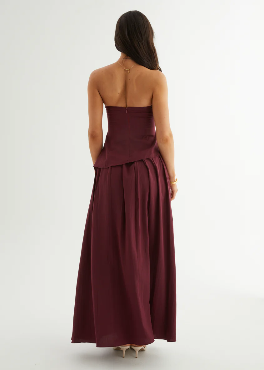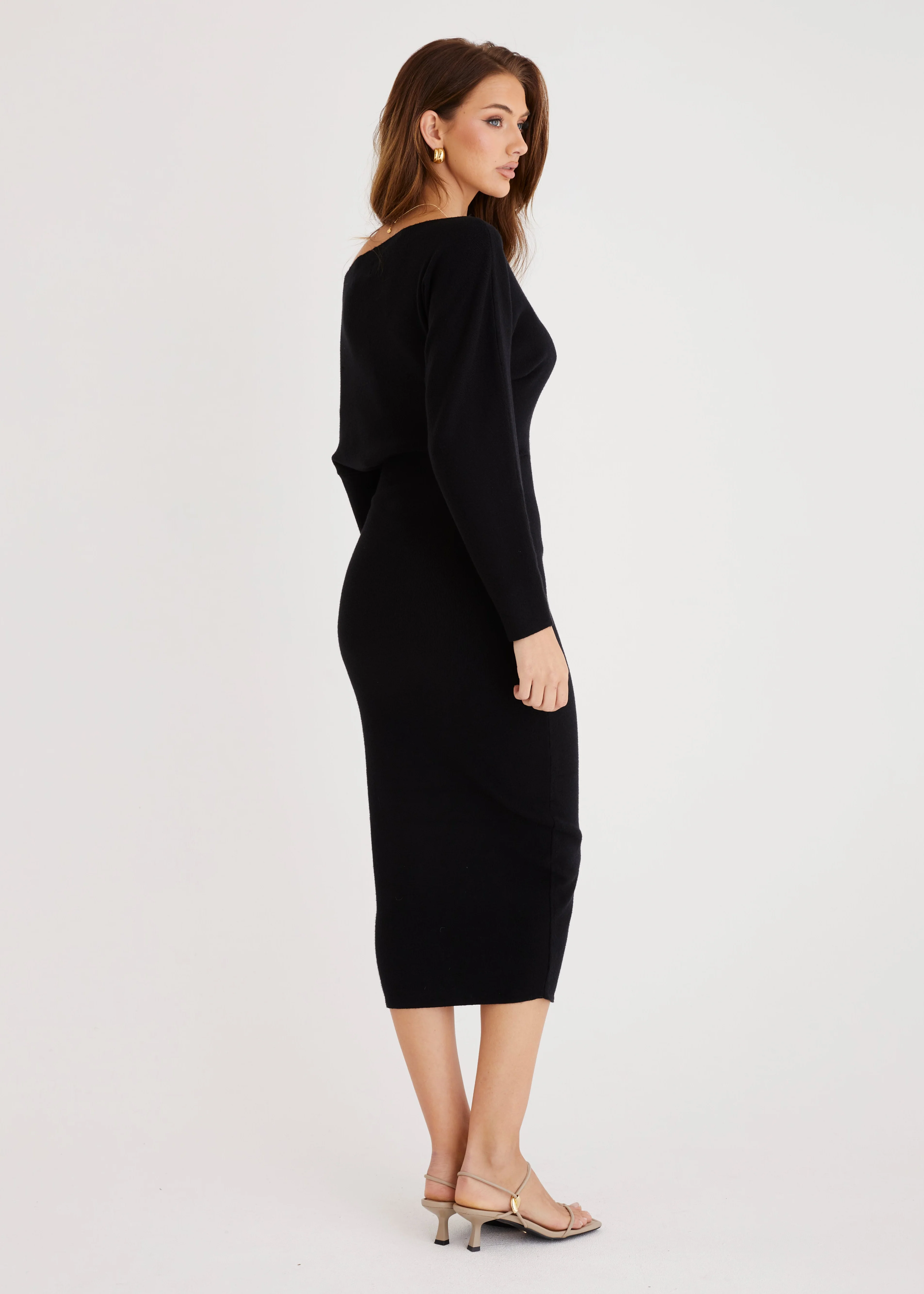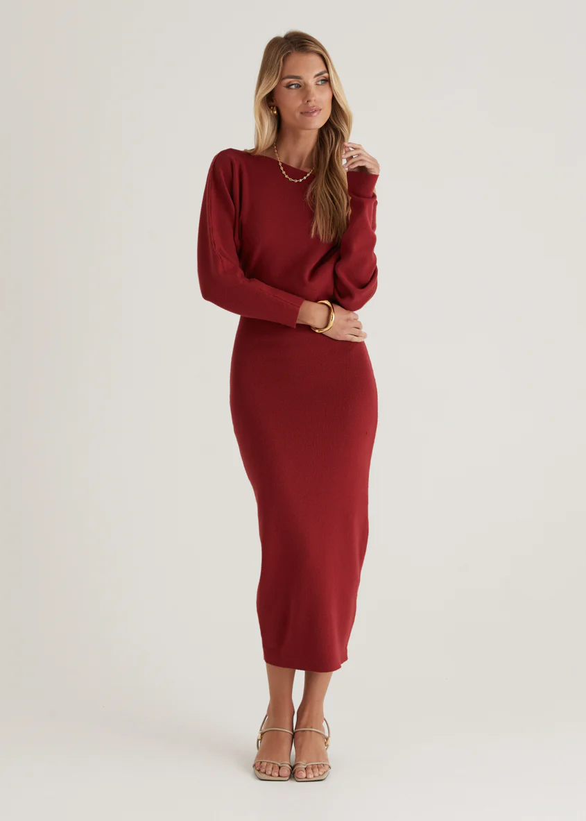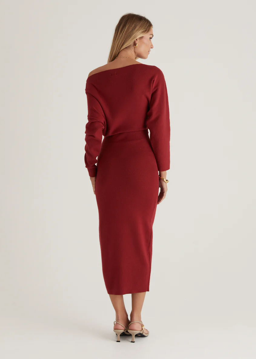 Milena Drop Shoulder Knit Midi Dress - Wine