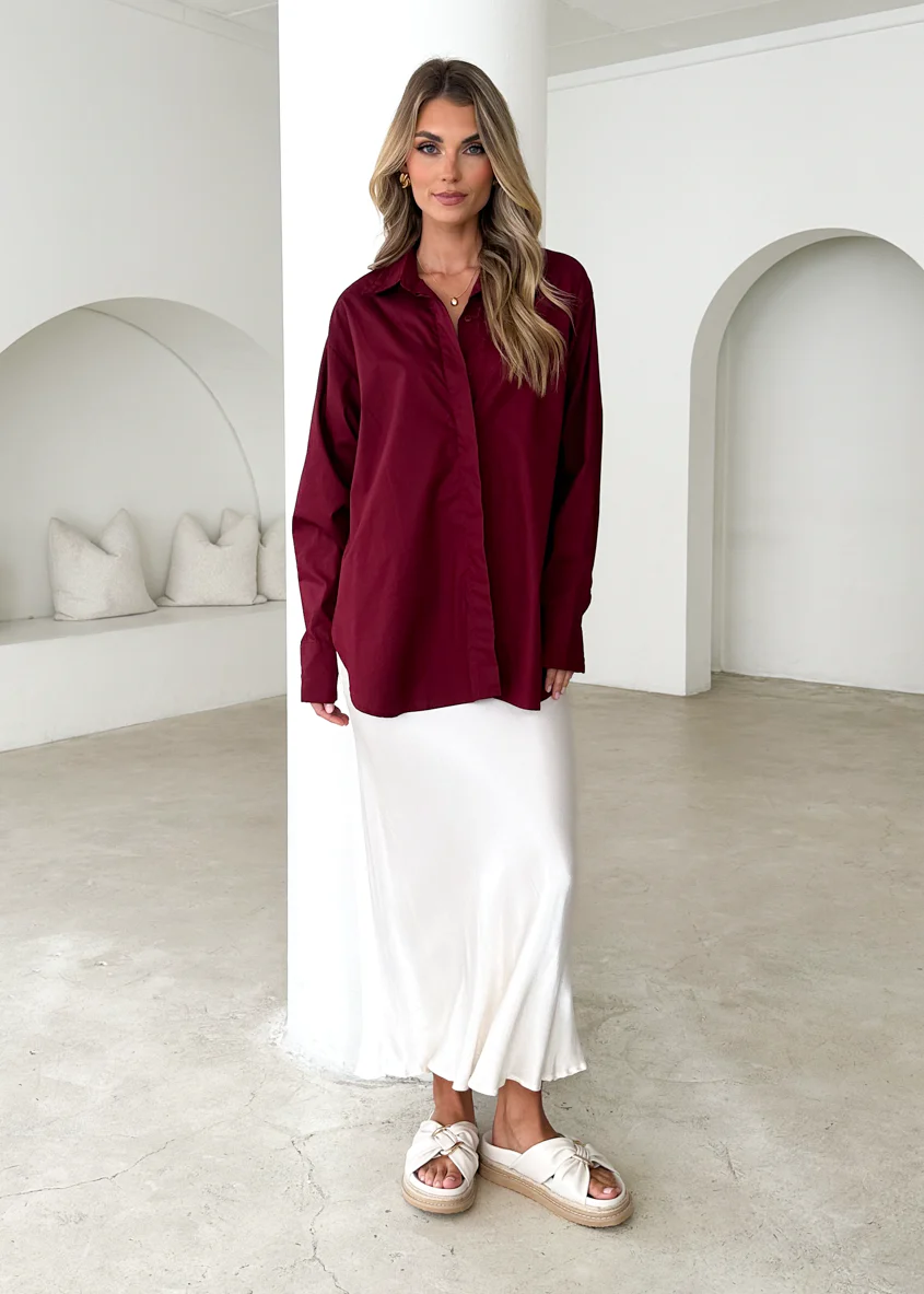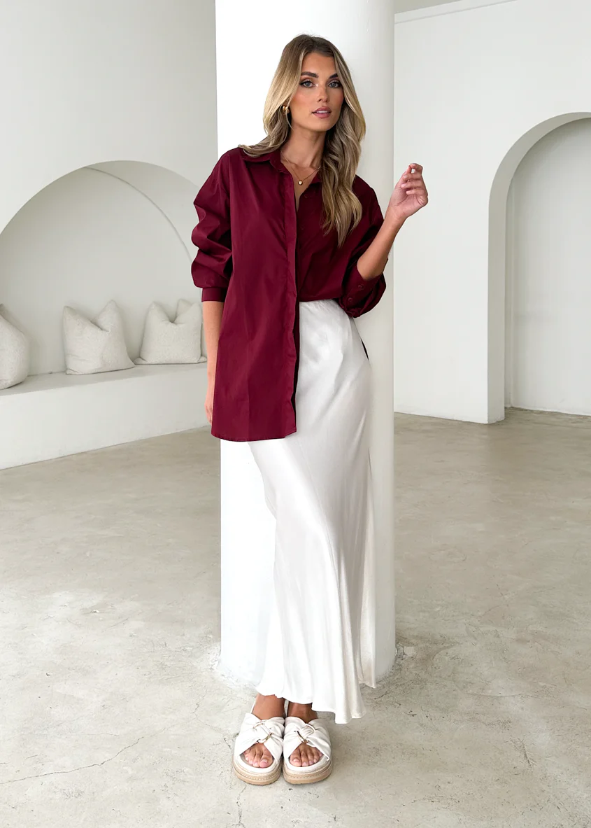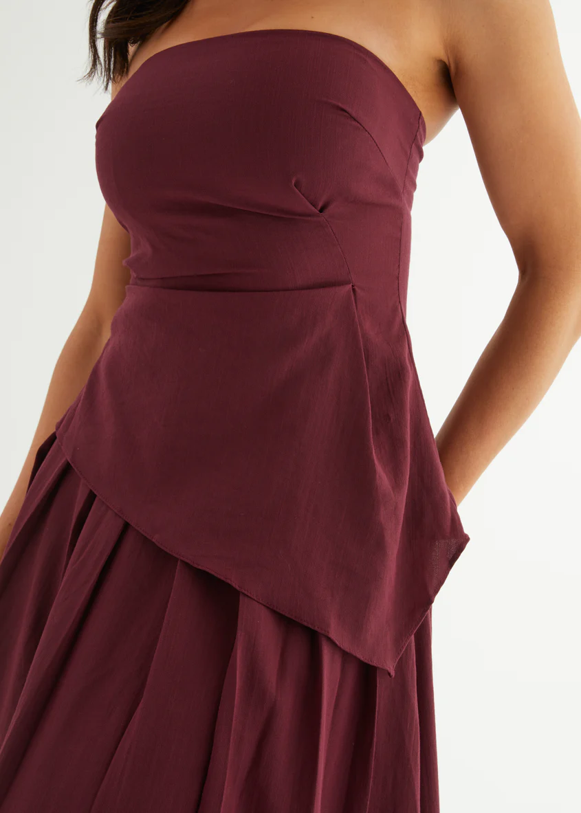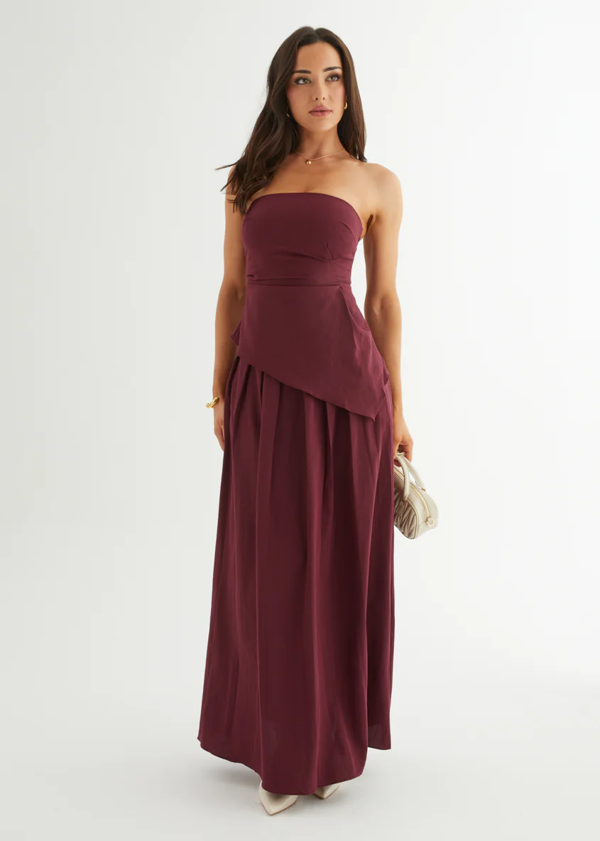 Milena Drop Shoulder Knit Midi Dress - Wine