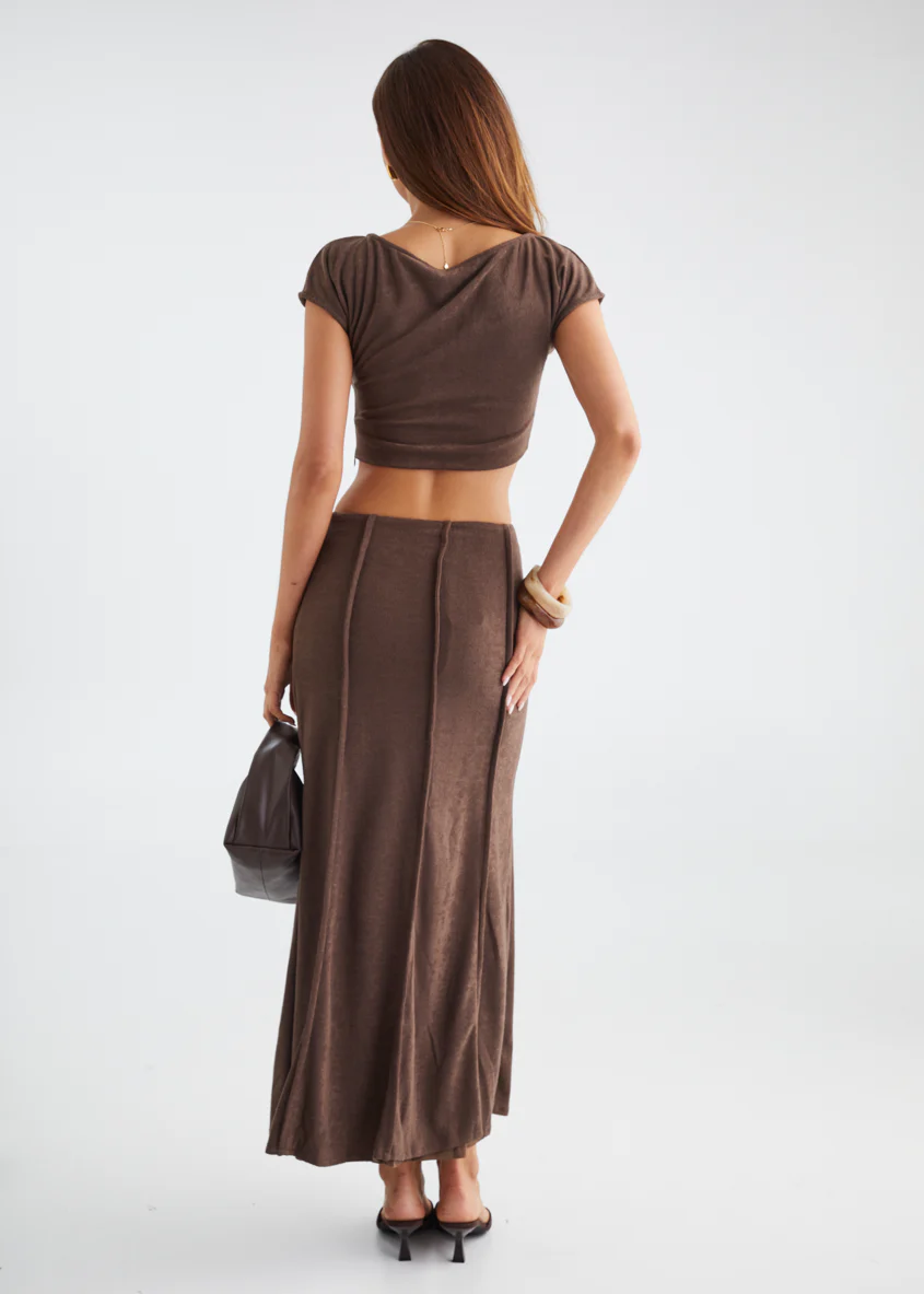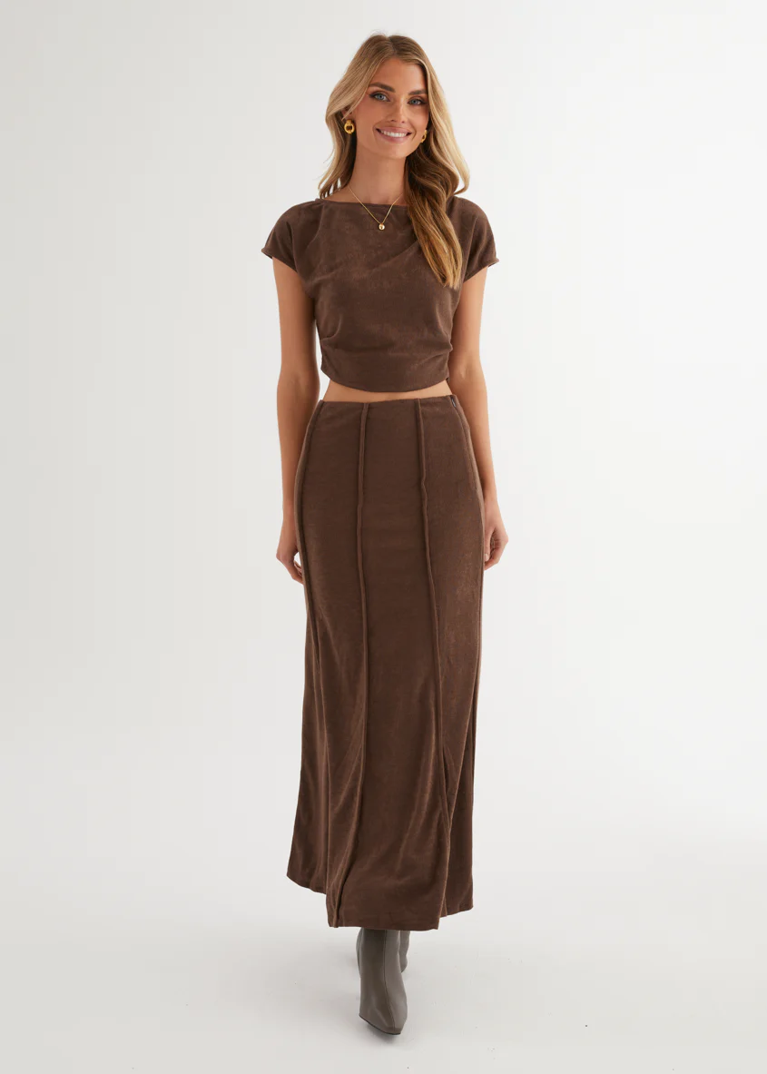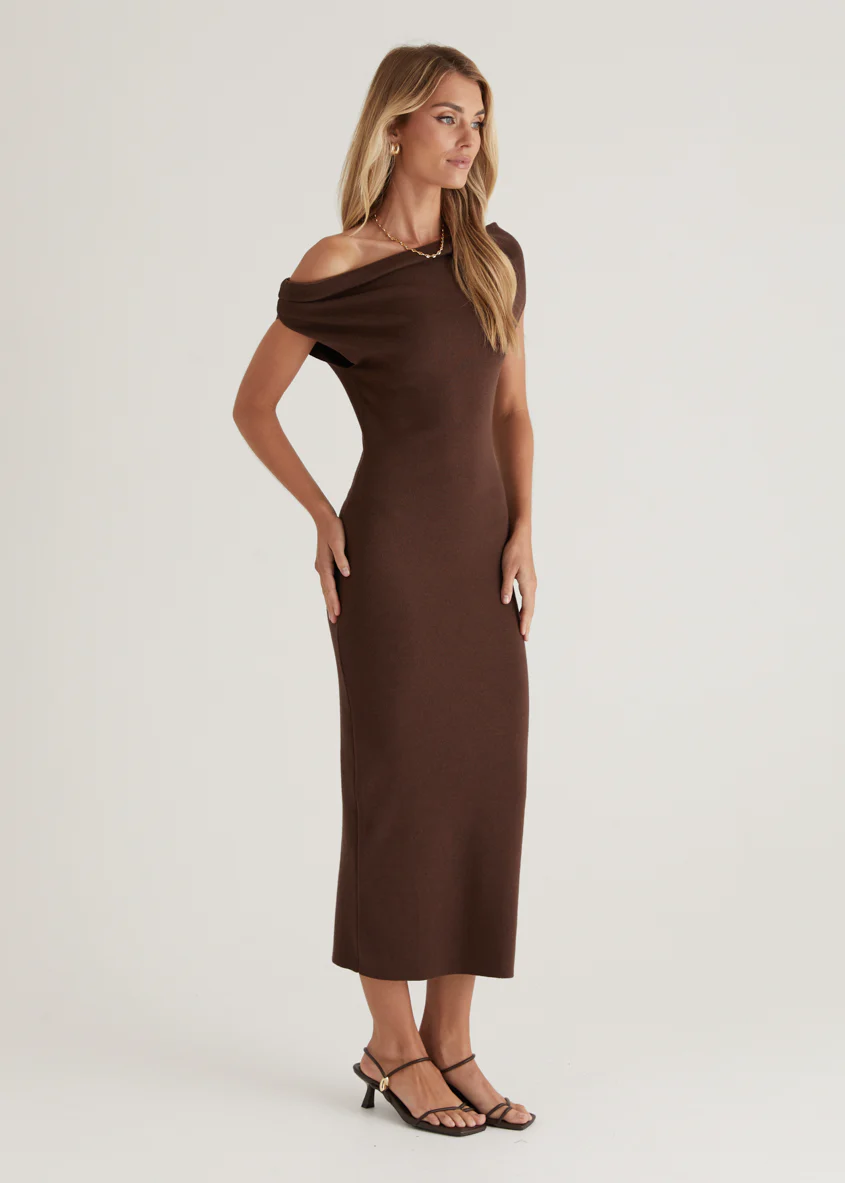 Milena Drop Shoulder Knit Midi Dress - Chocolate