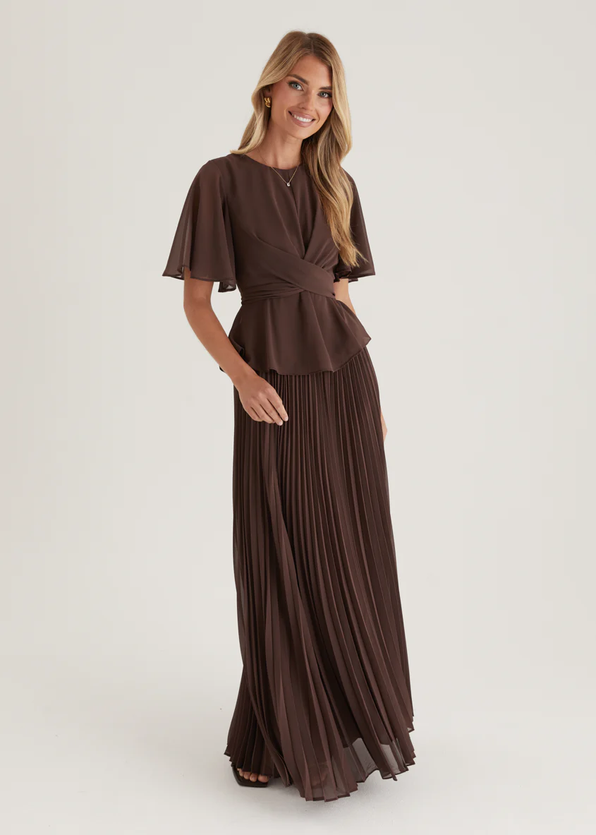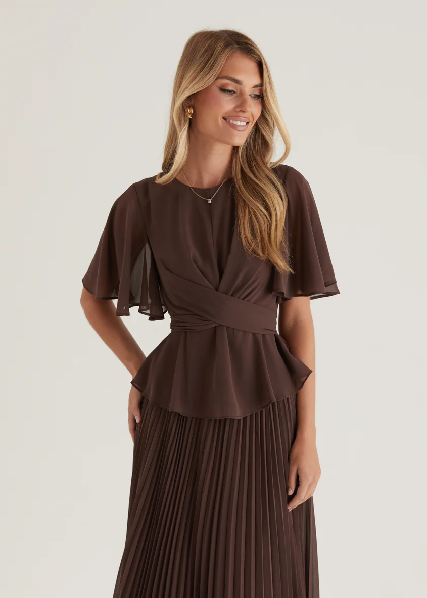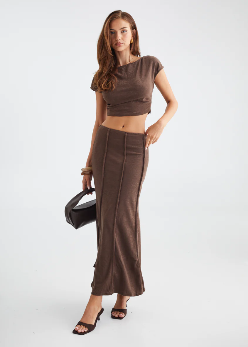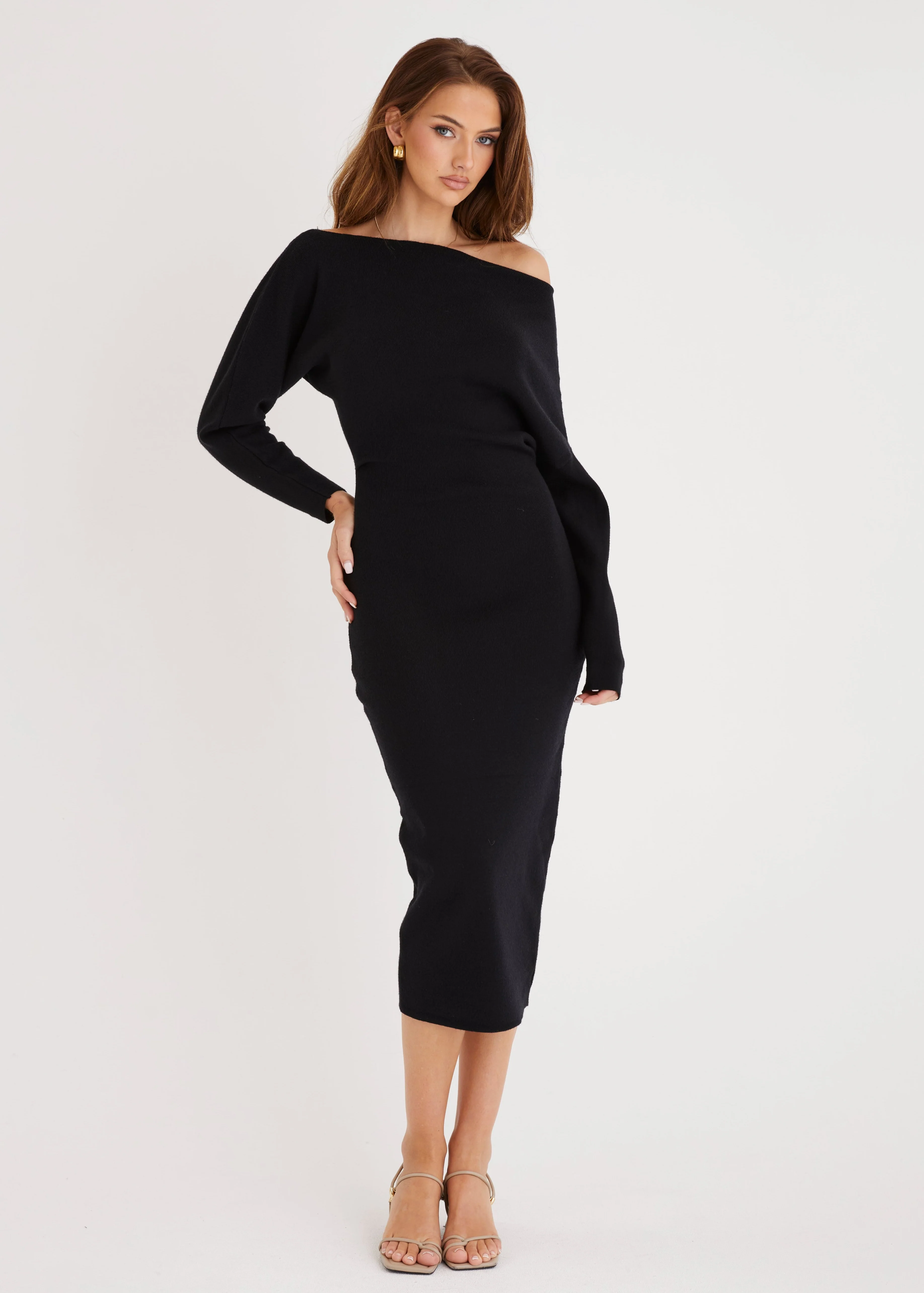 Milena Drop Shoulder Knit Midi Dress - Chocolate