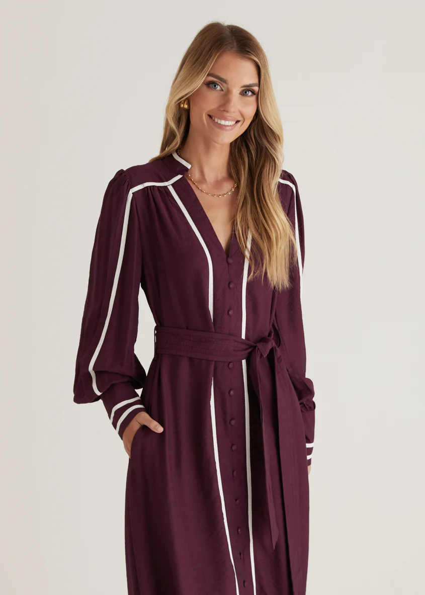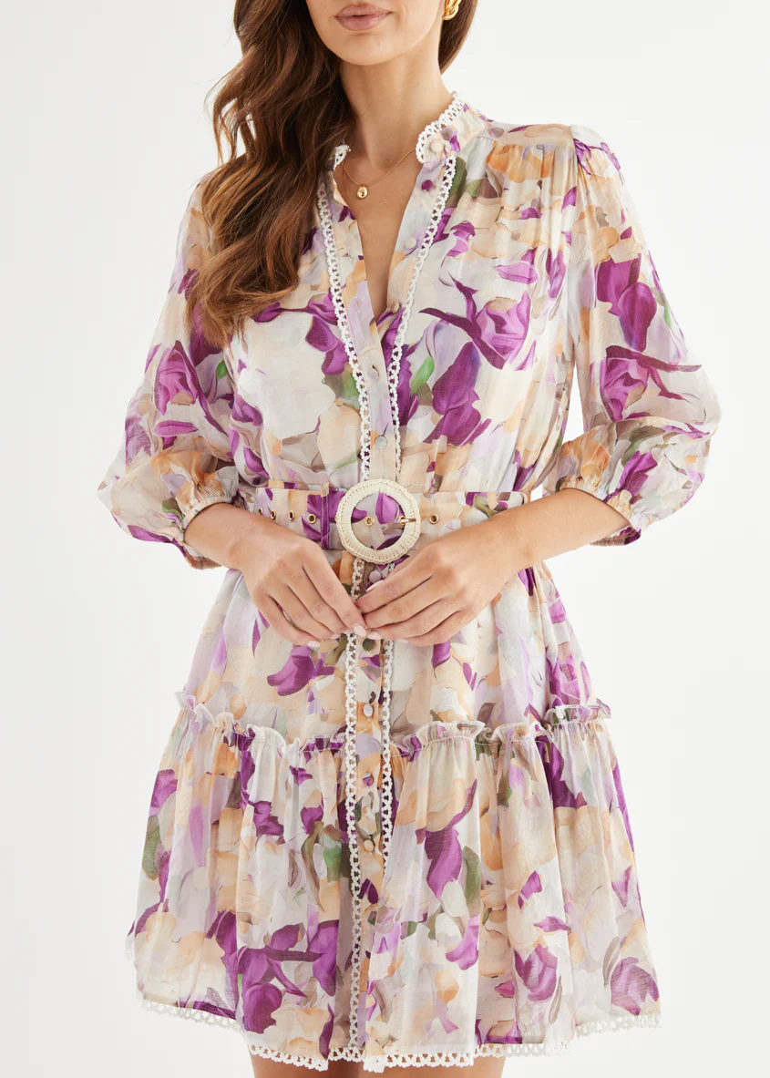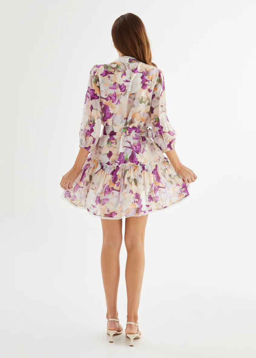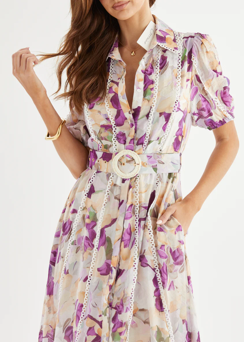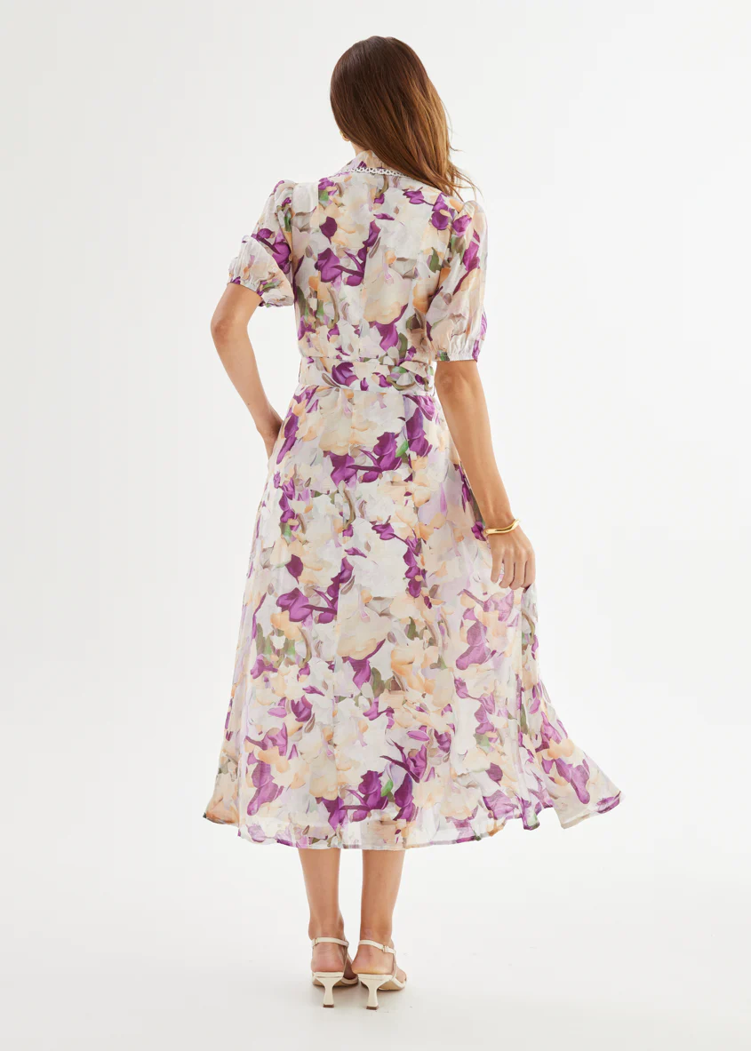 May Strapless Mesh Midi Dress - Mulberry Floral