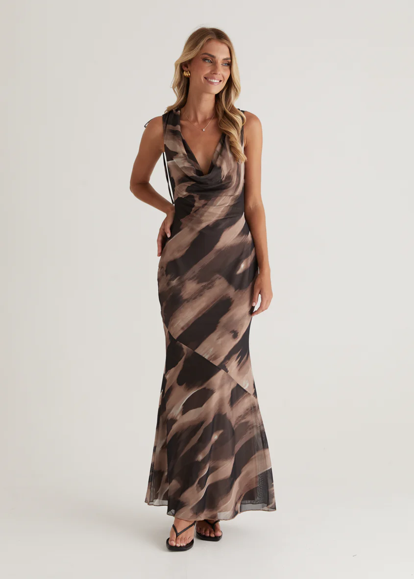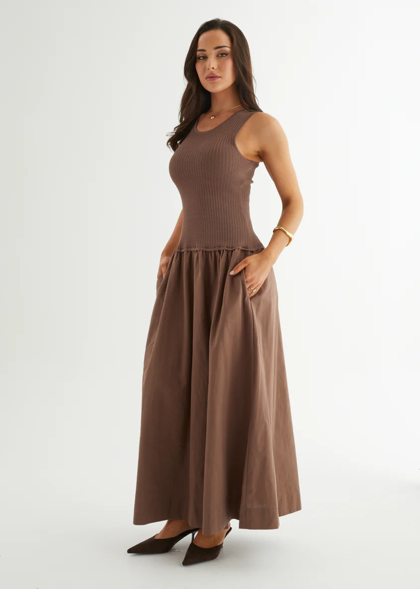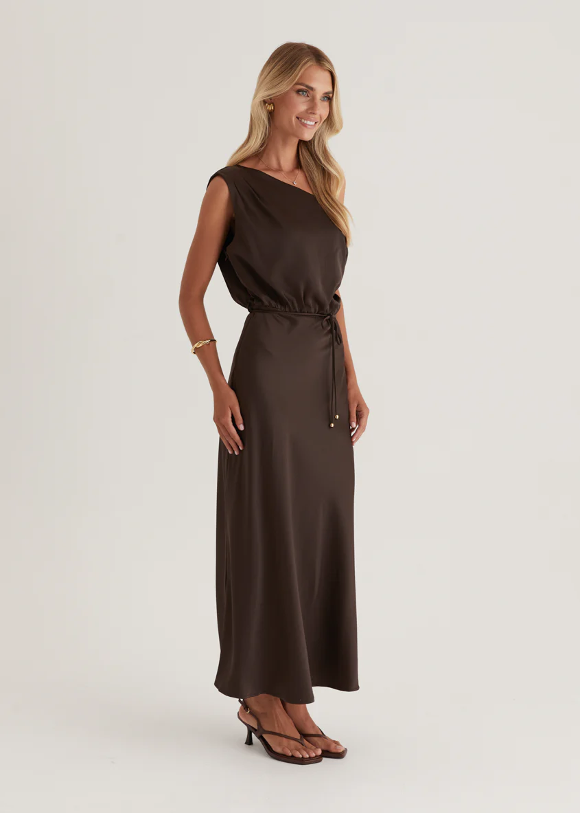 Marisa Drop Shoulder Midi Dress - Chocolate