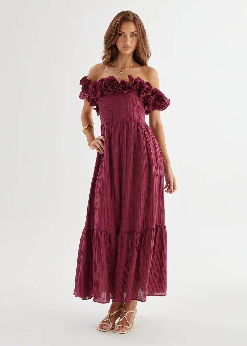 Marlow Off Shoulder Maxi Dress - Mulberry