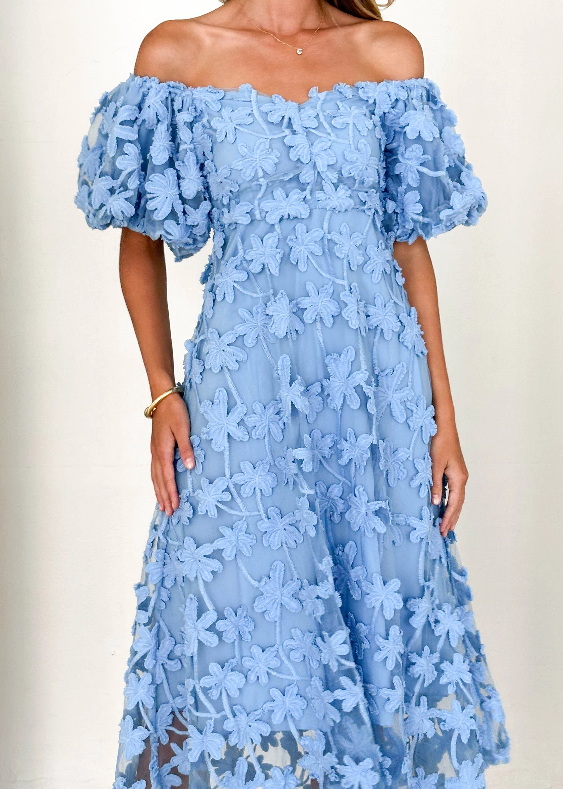Maliah Off Shoulder Midi Dress - Blue Lace