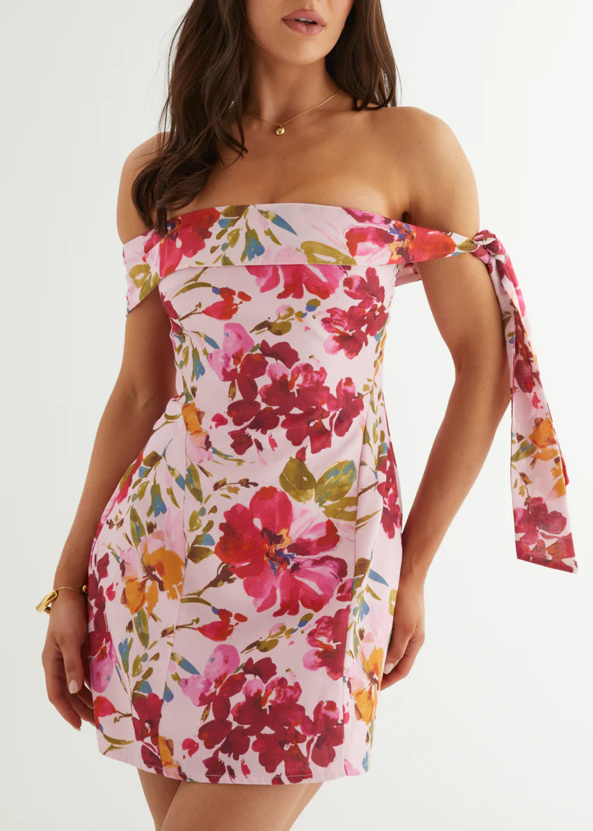 Maliya Off Shoulder Dress - Pink Blossom