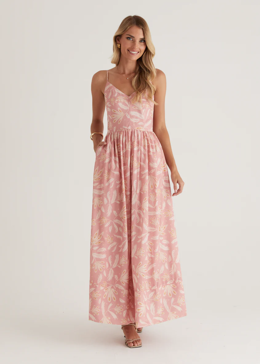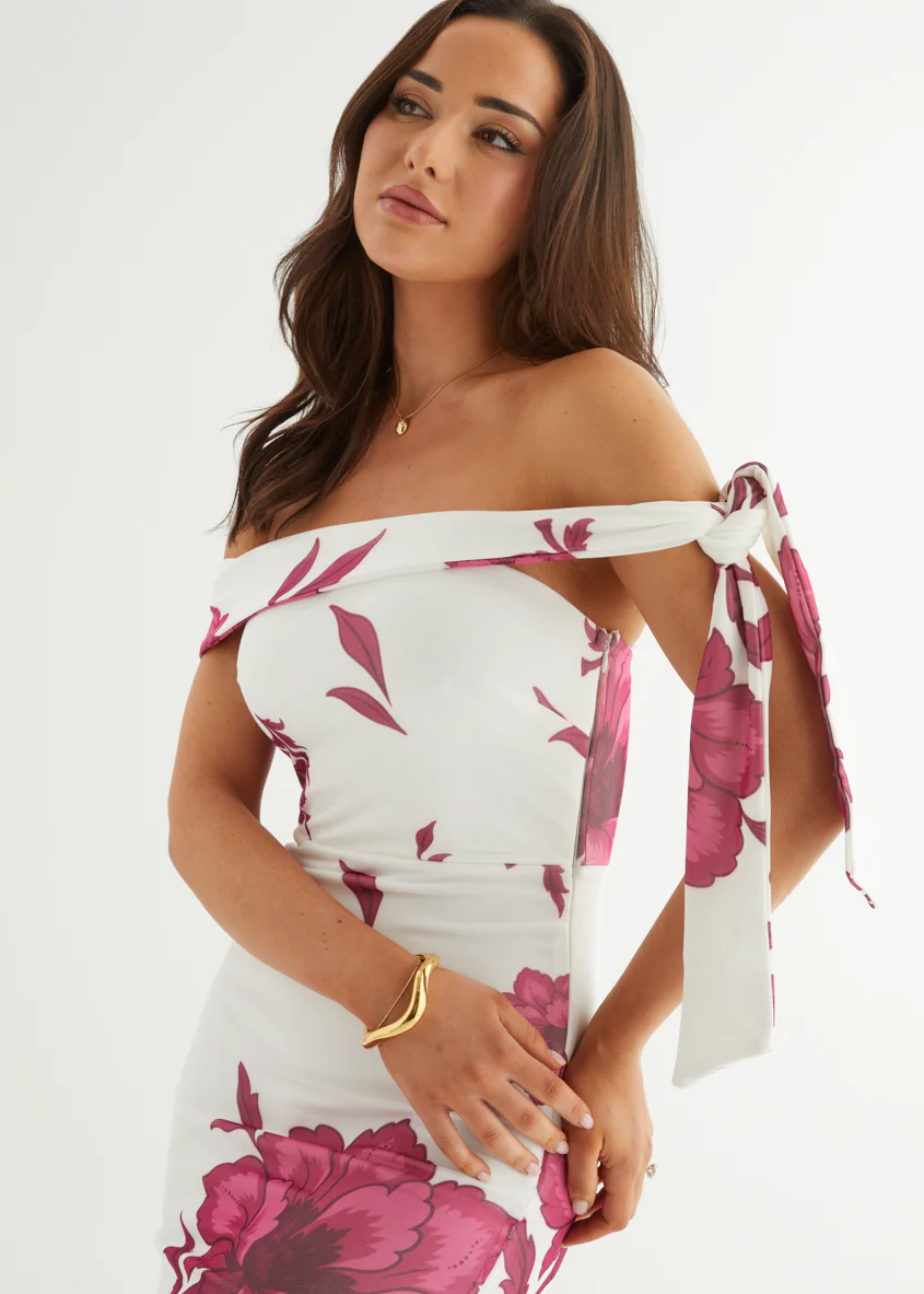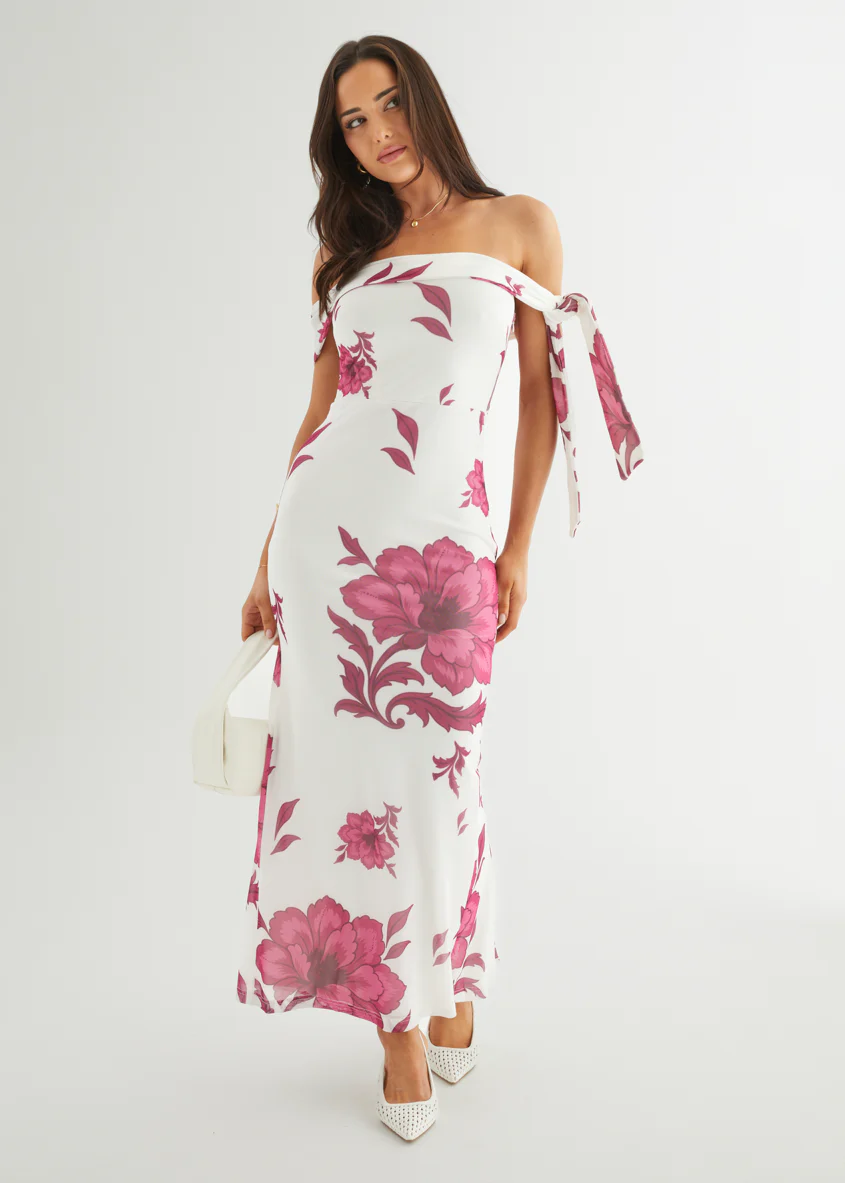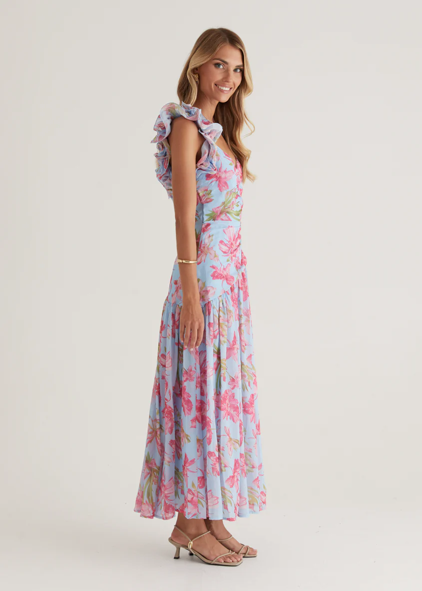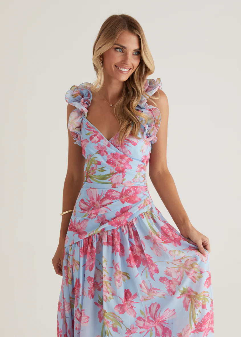 Madisyn Mesh Maxi Dress - Berry Flowers