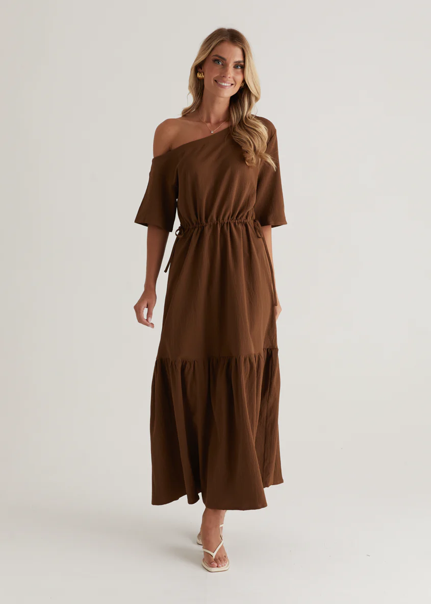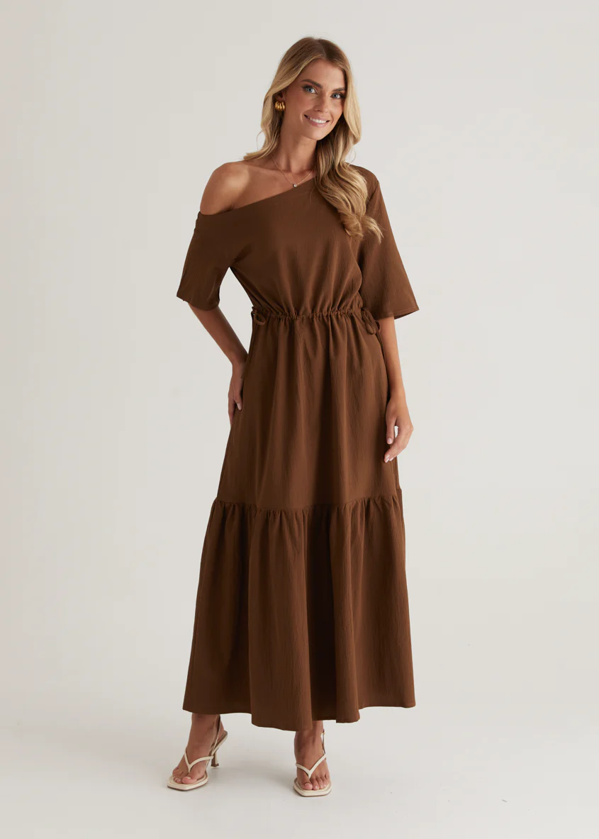 Loren Drop Shoulder Maxi Dress - Chocolate