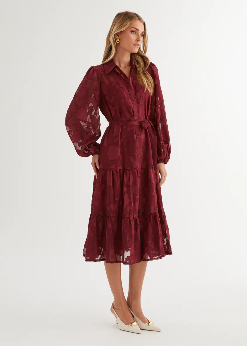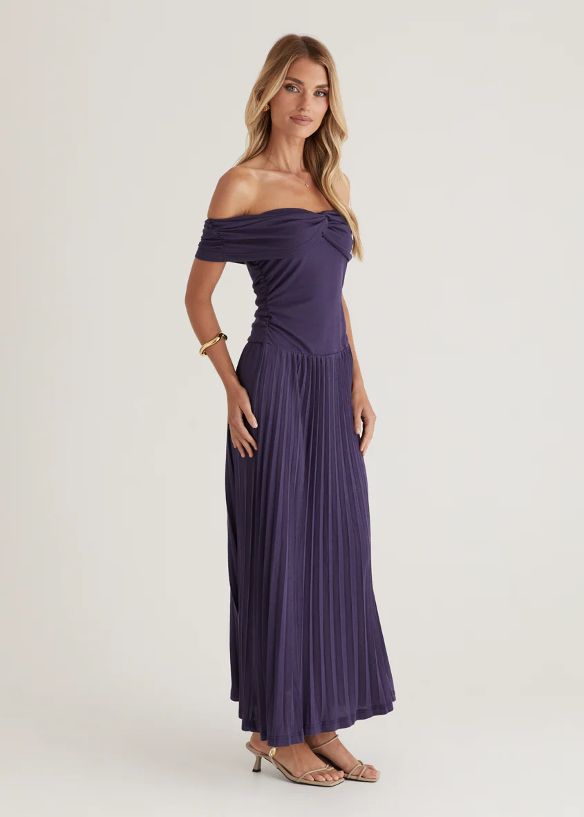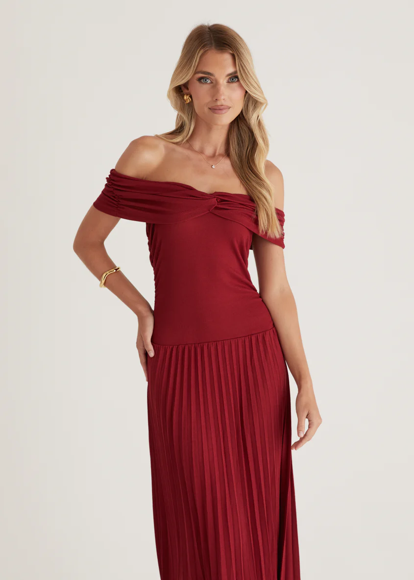 Lottie Off Shoulder Maxi Dress - Burgundy