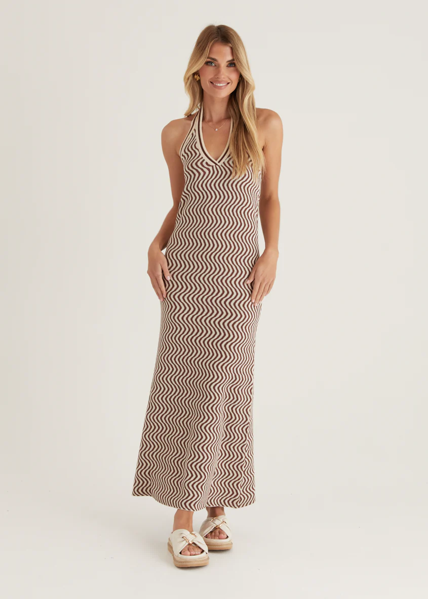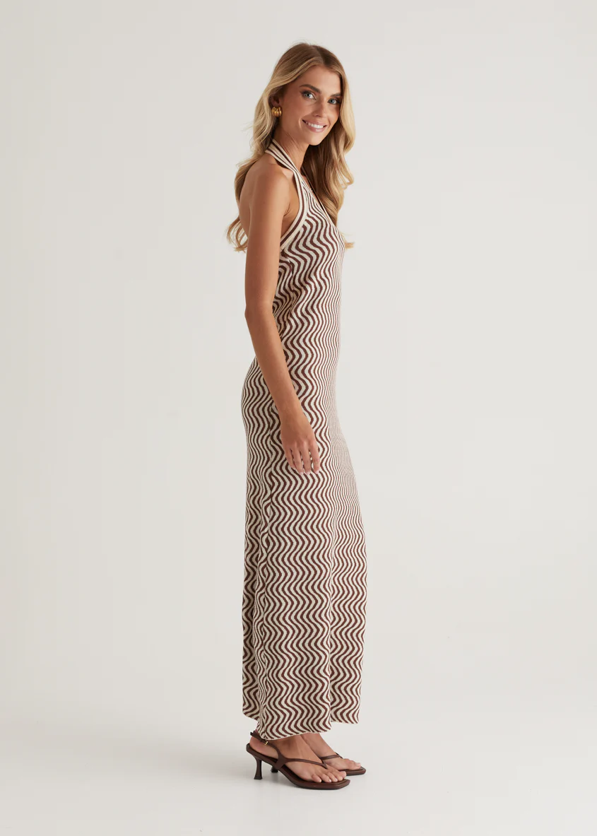 Lorelai Halter Knit Maxi Dress - Brown Swirl