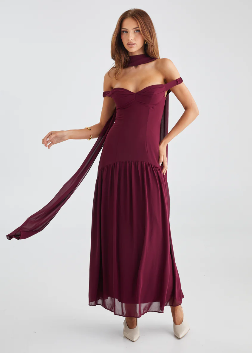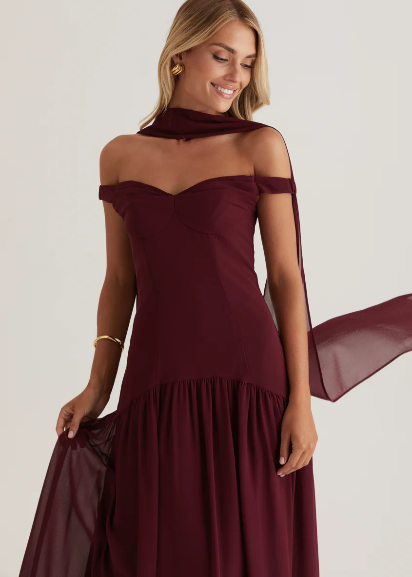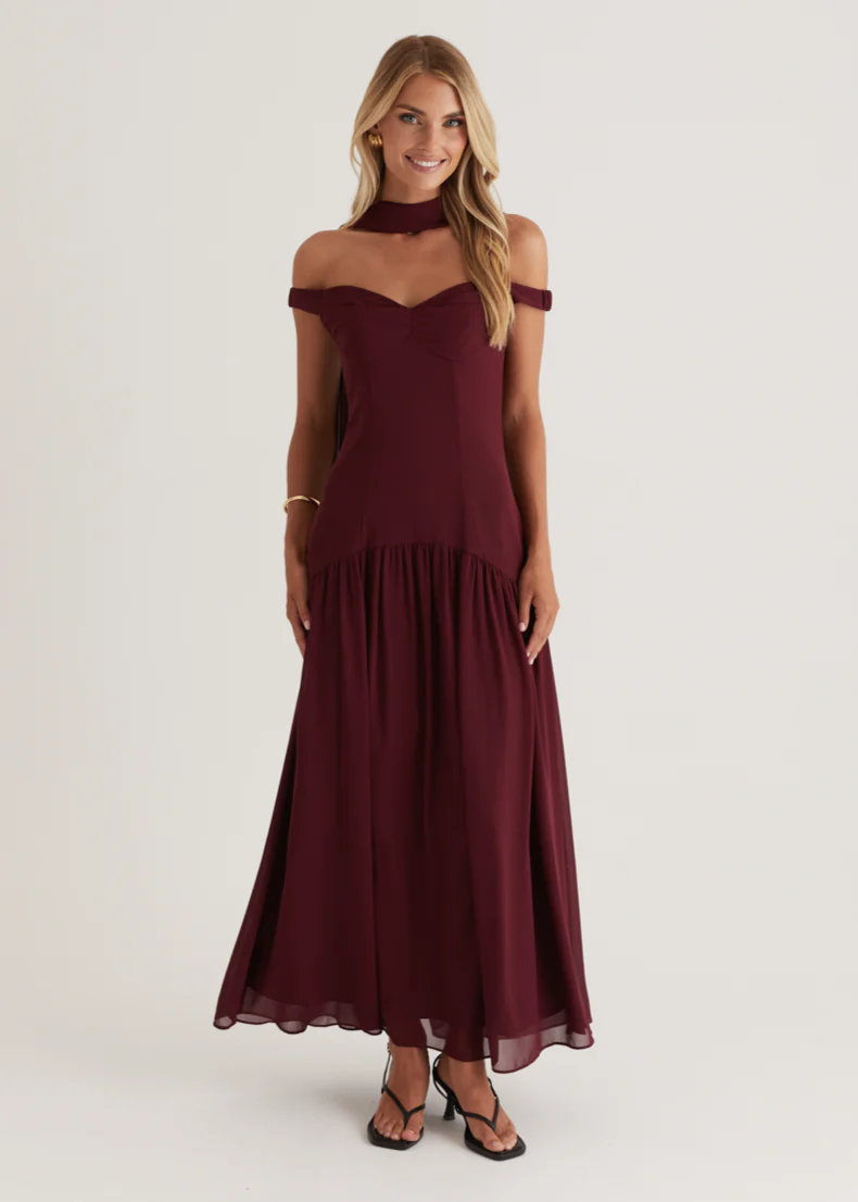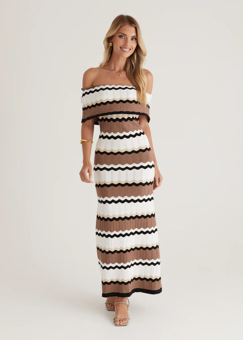 Kombi Off Shoulder Knit Maxi Dress - Mocha