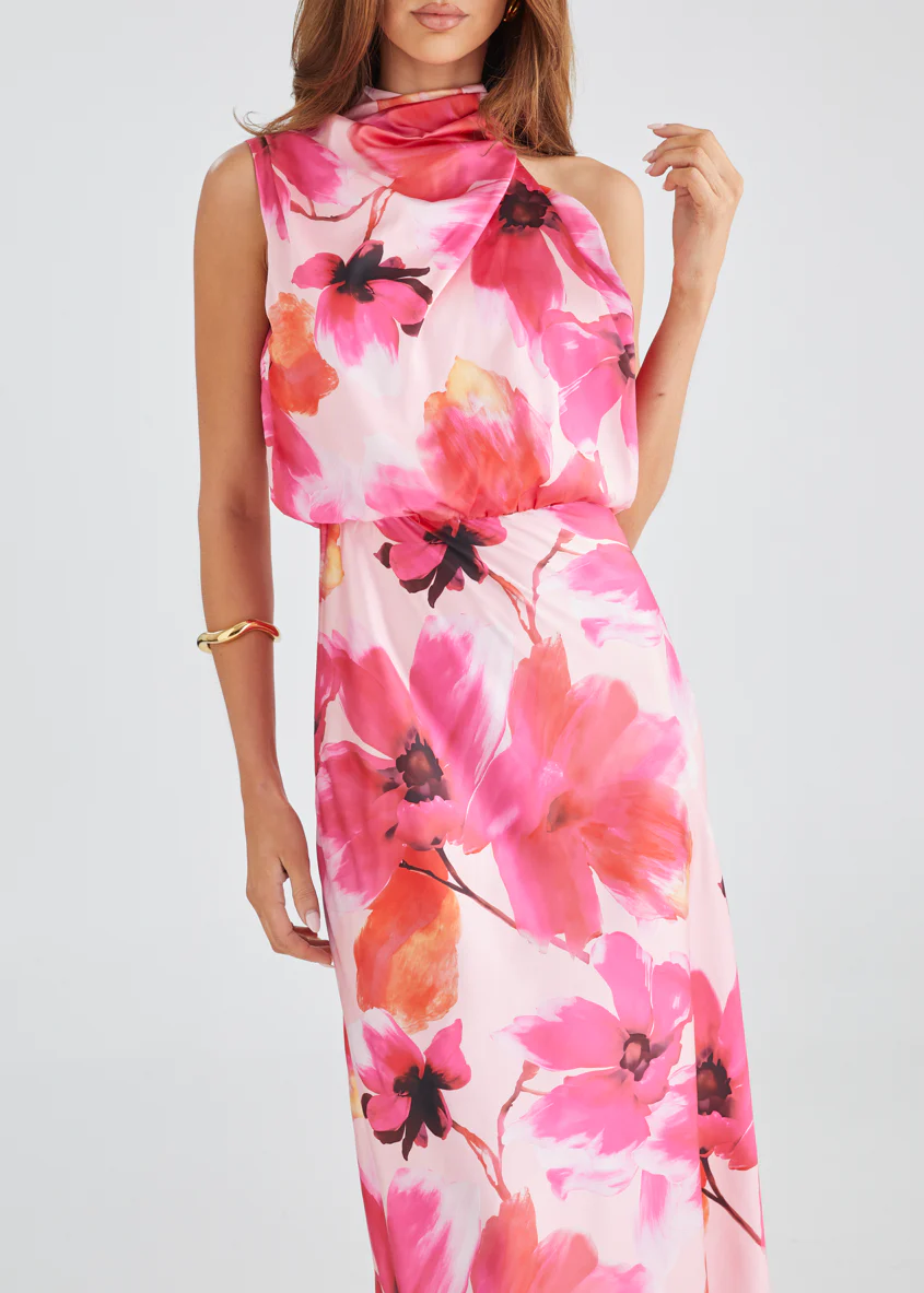 Jorgia Strapless Maxi Dress - Pink Abstract
