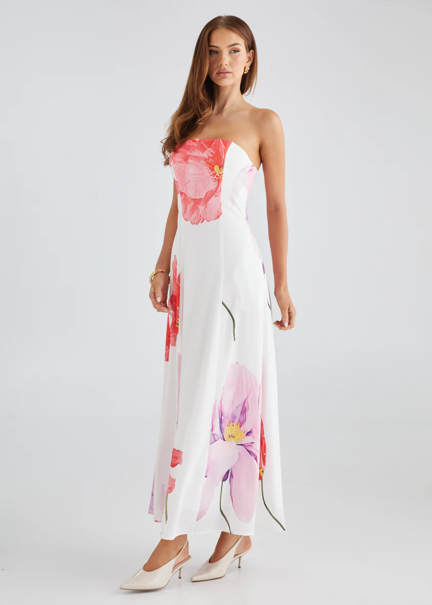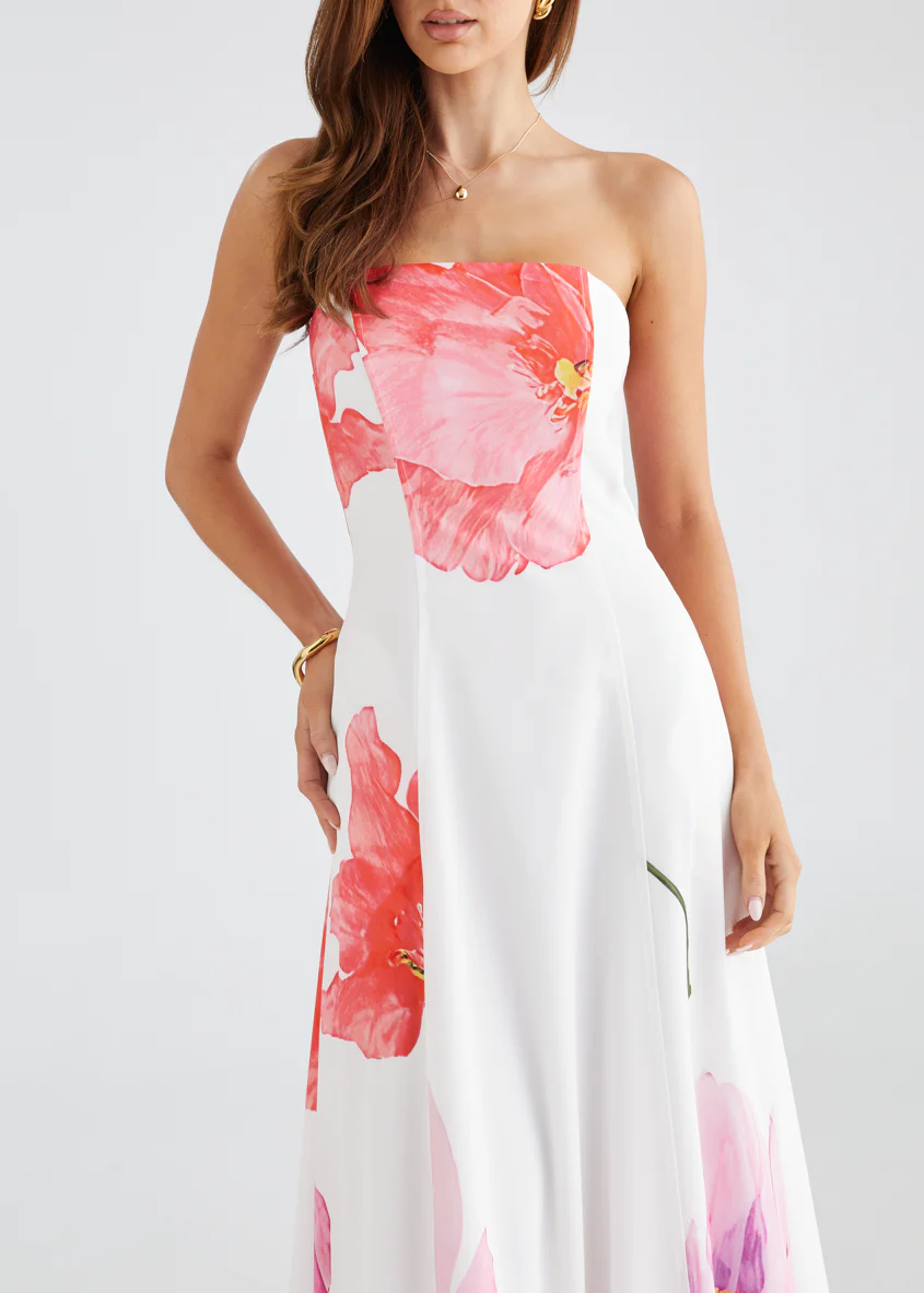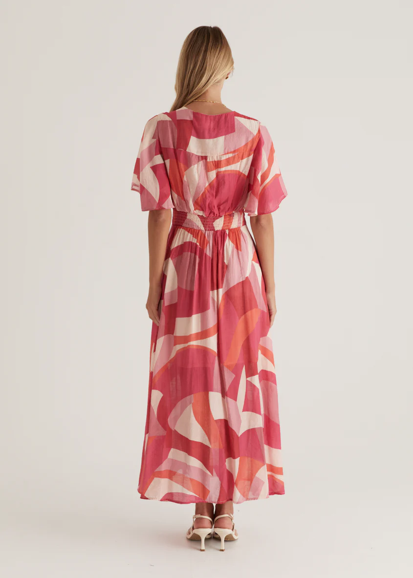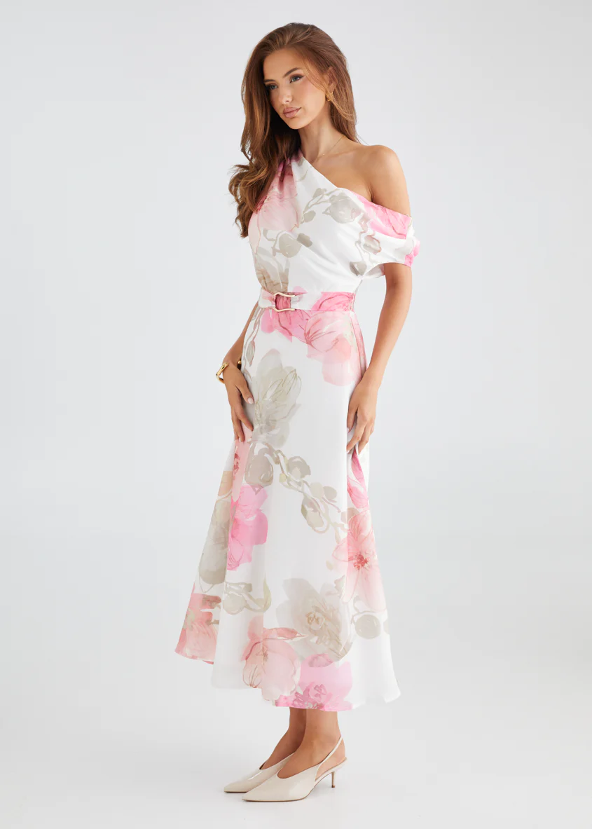 Jacqui Drop Shoulder Midi Dress - Pink Floral