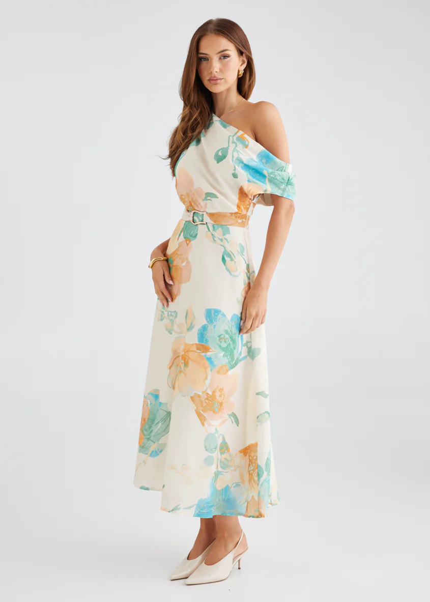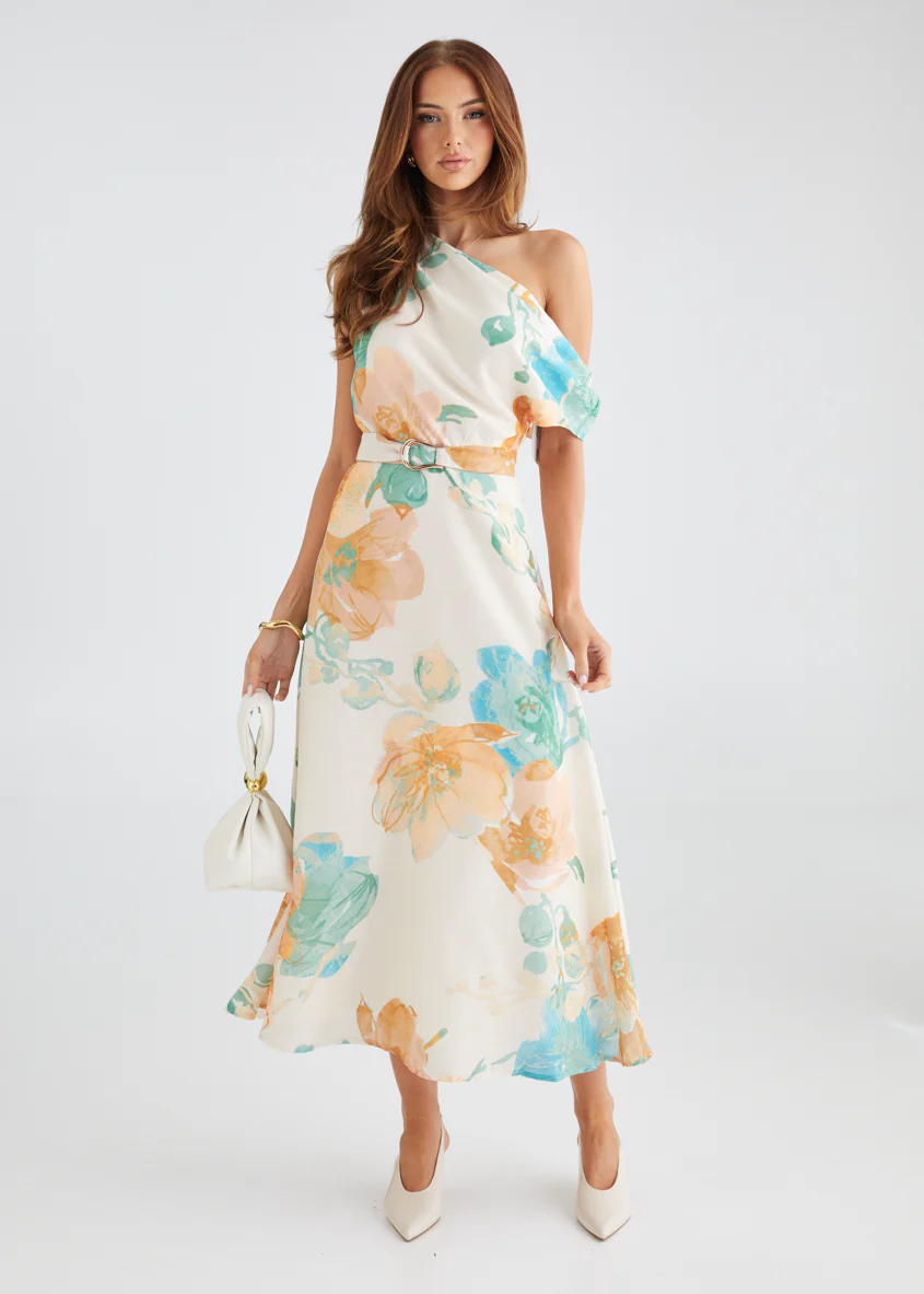 Jacqui Drop Shoulder Midi Dress - Tangerine Floral