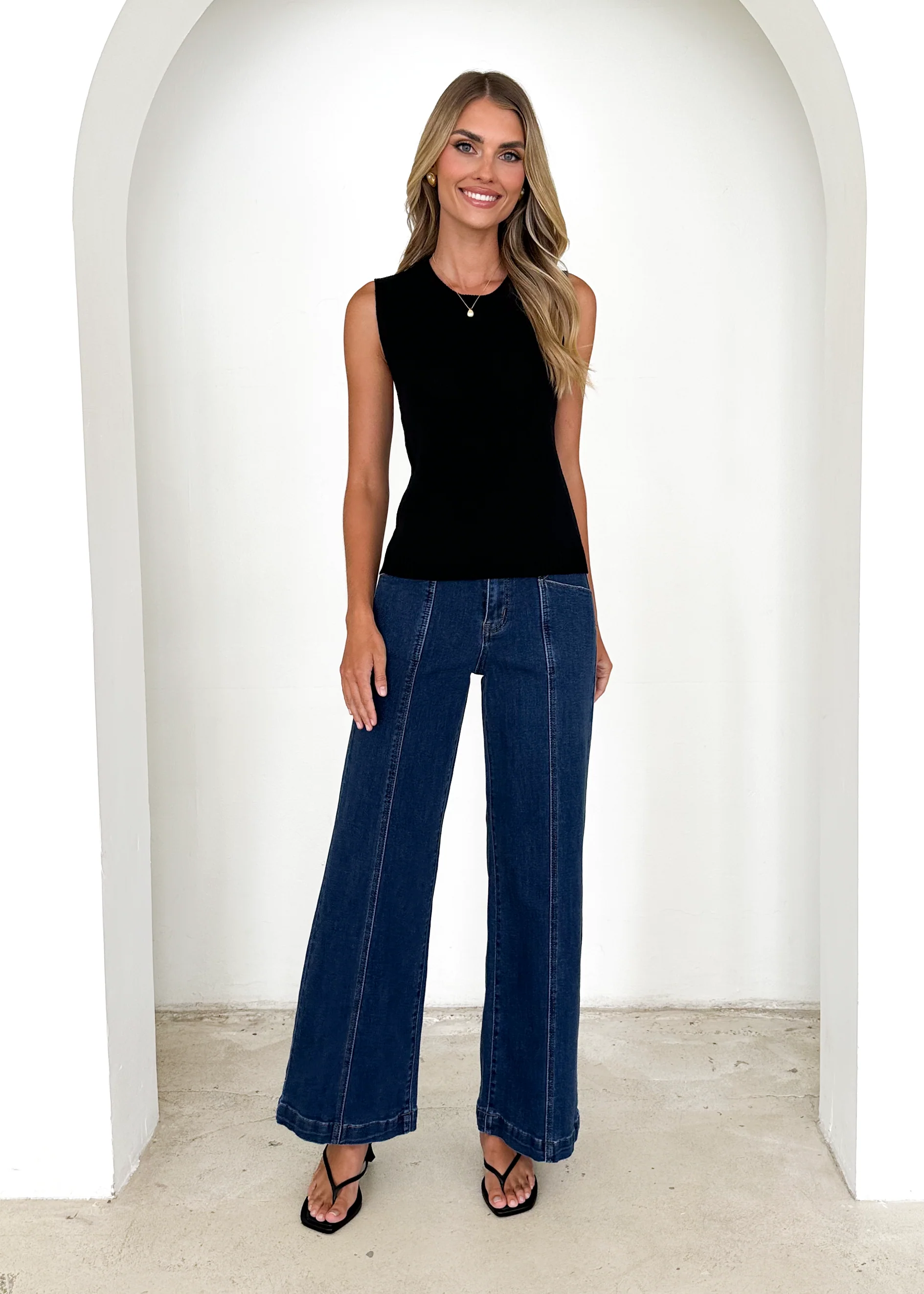 Jess Stretch Wide Leg Jeans - Mid Blue