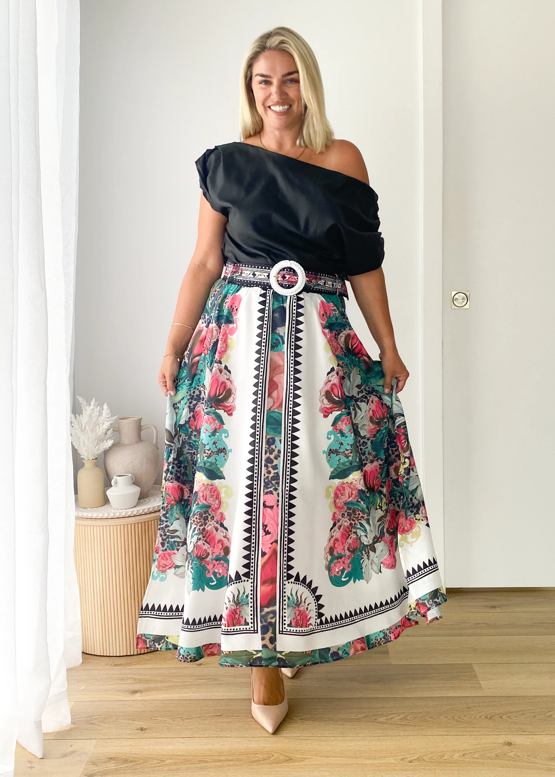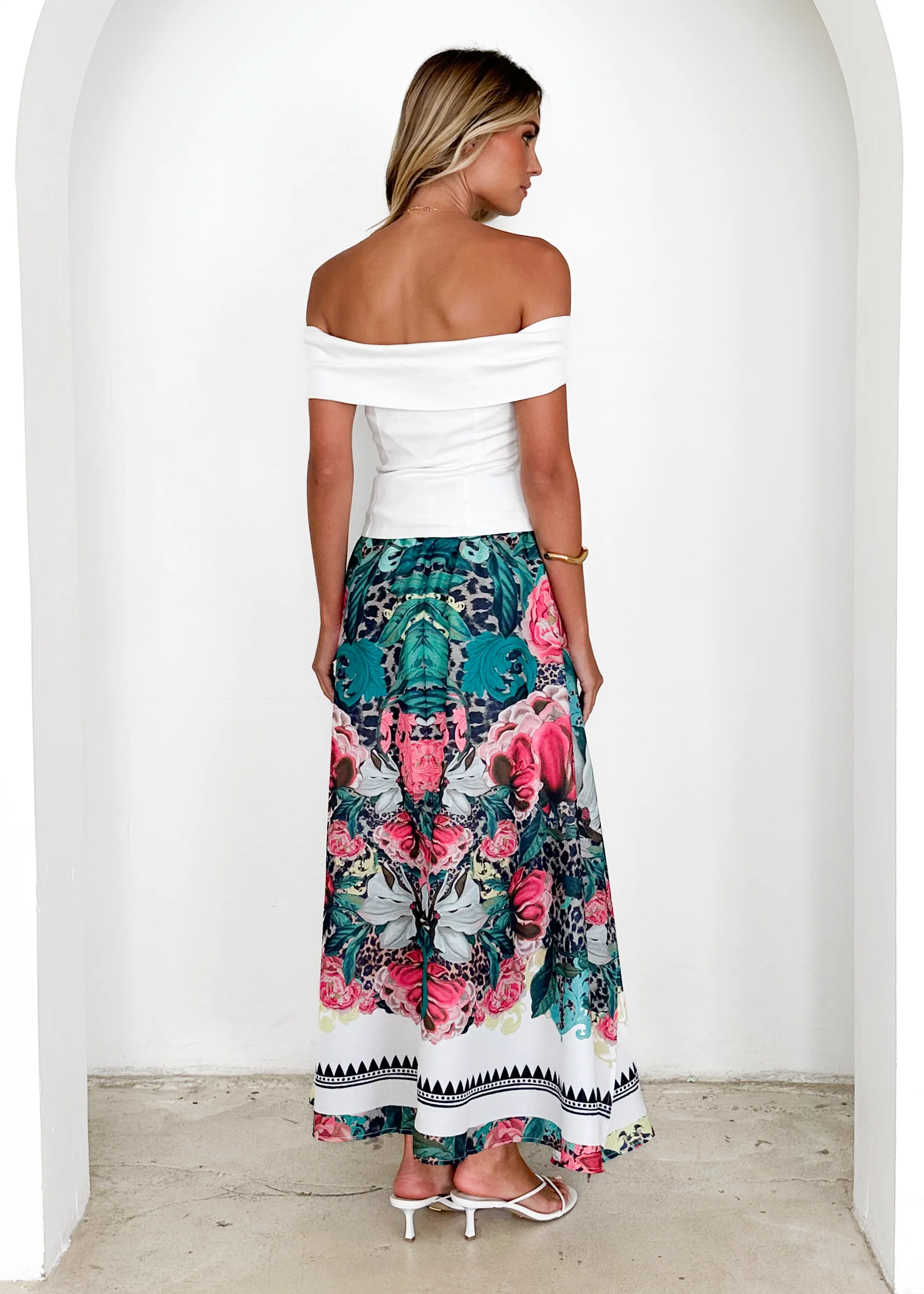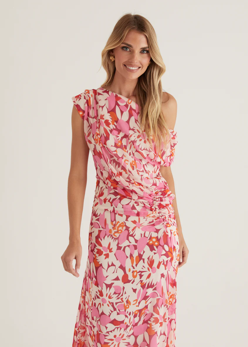 Iris Off Shoulder Mesh Maxi Dress - Hot Pink Floral
