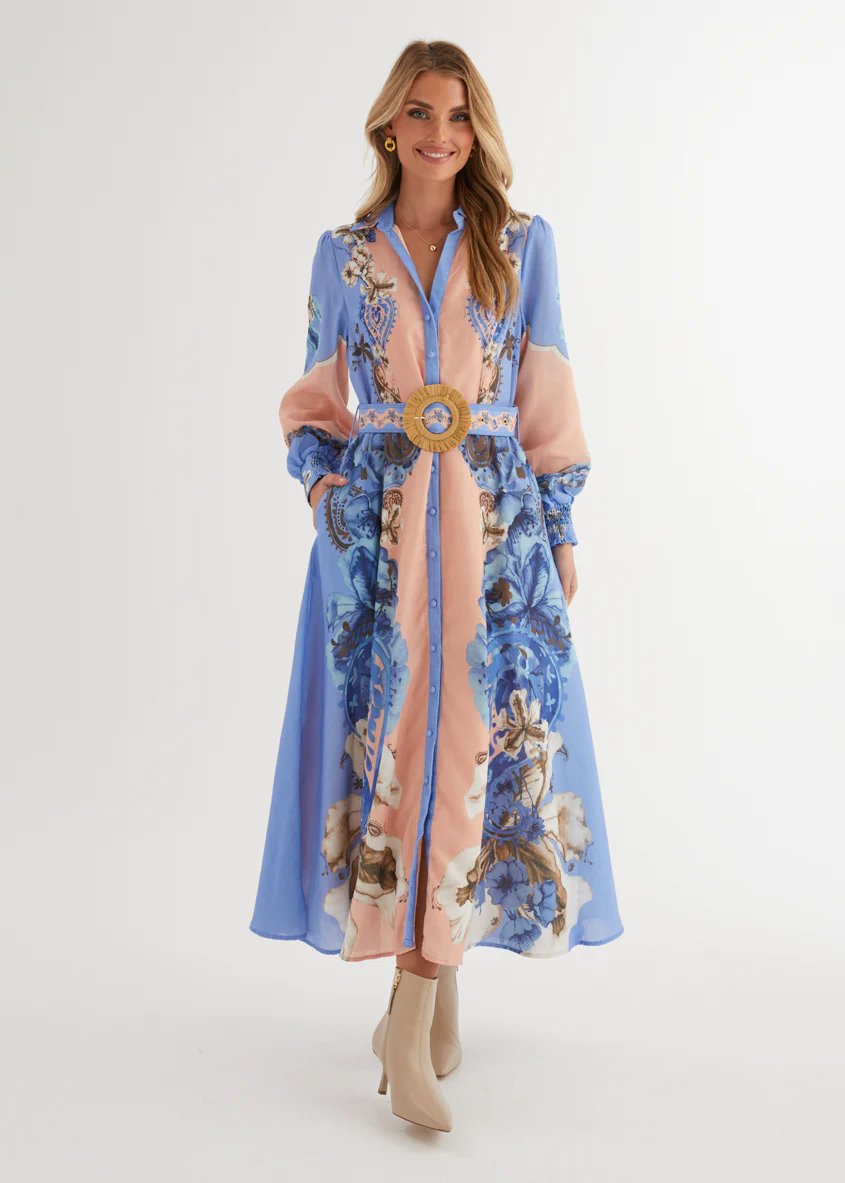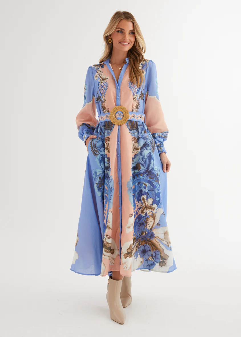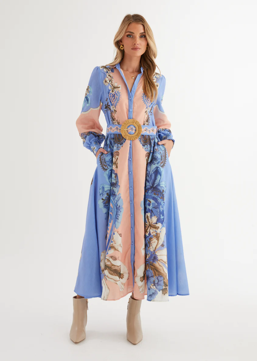 Iris Off Shoulder Mesh Maxi Dress - Hot Pink Floral