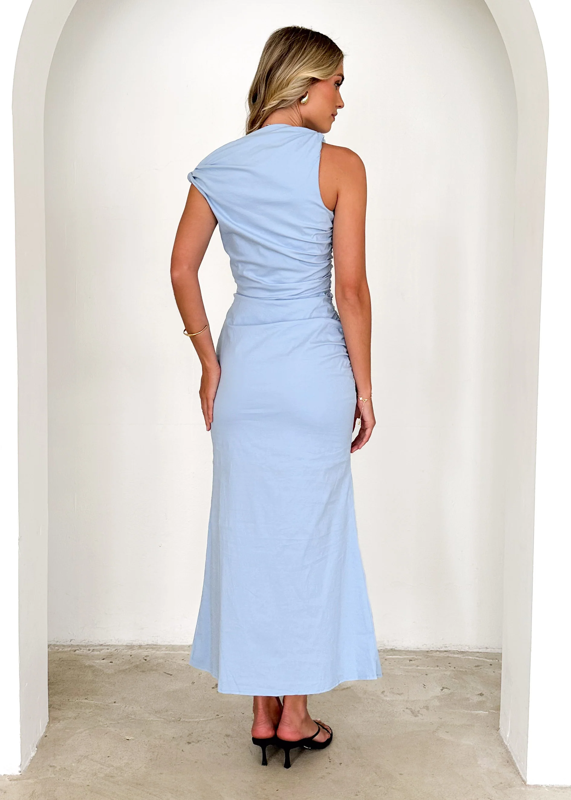 Gem One Shoulder Maxi Dress - Sky Blue