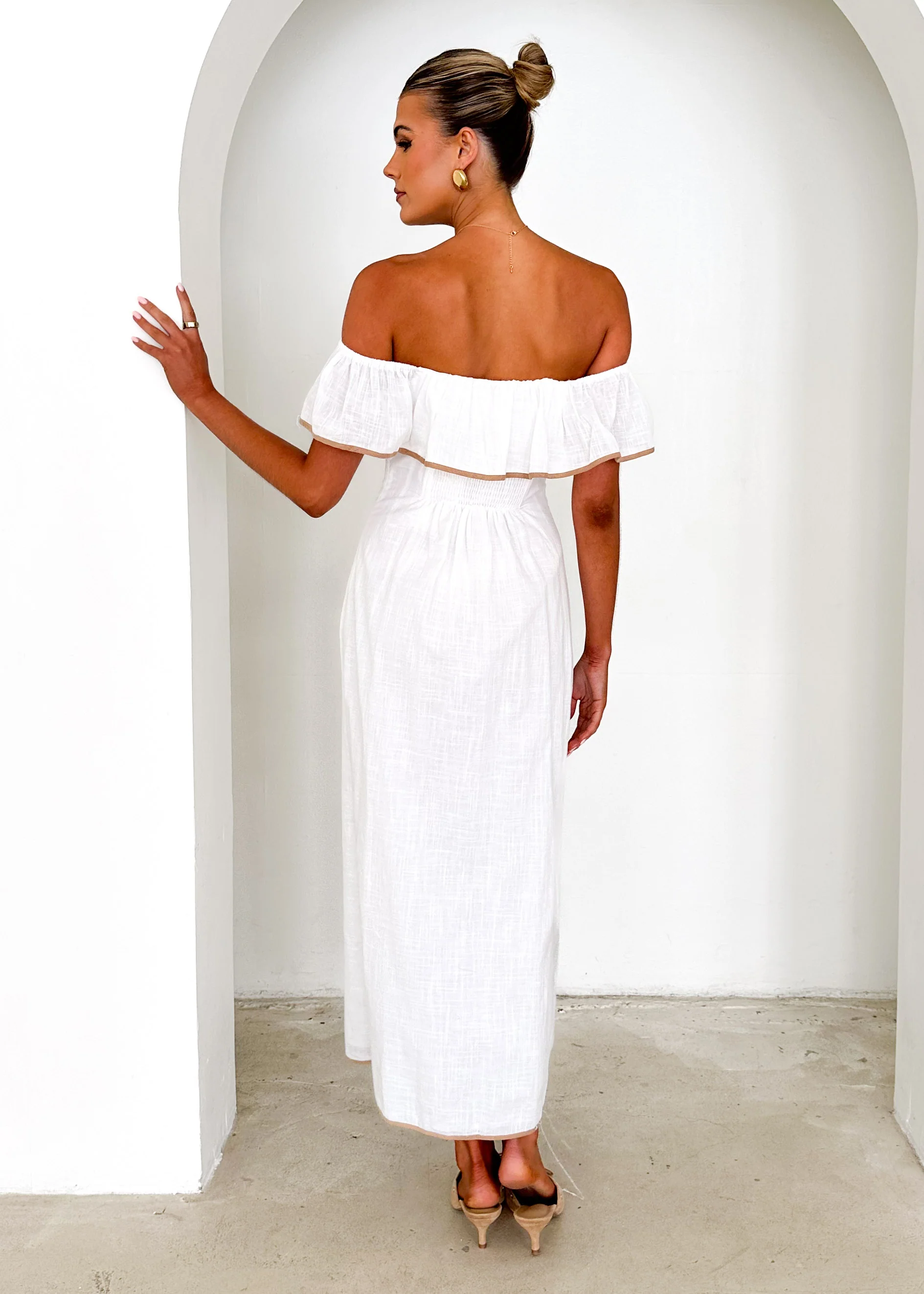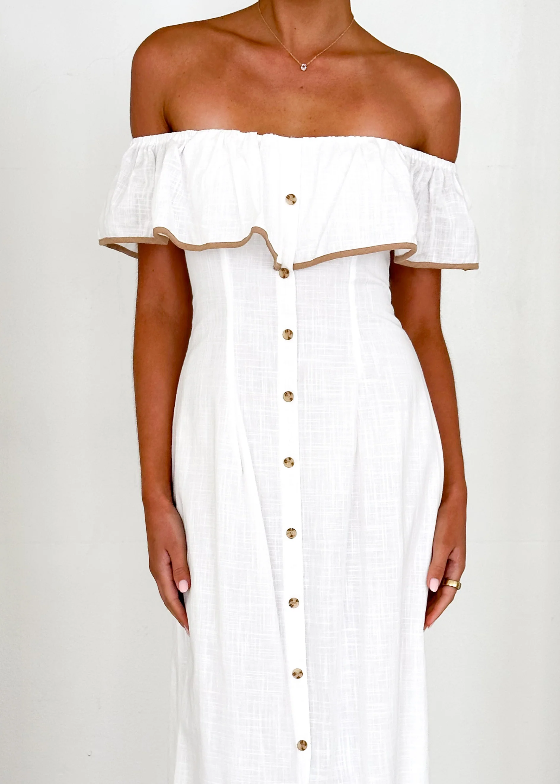 Genesis Off Shoulder Midi Dress - Off White