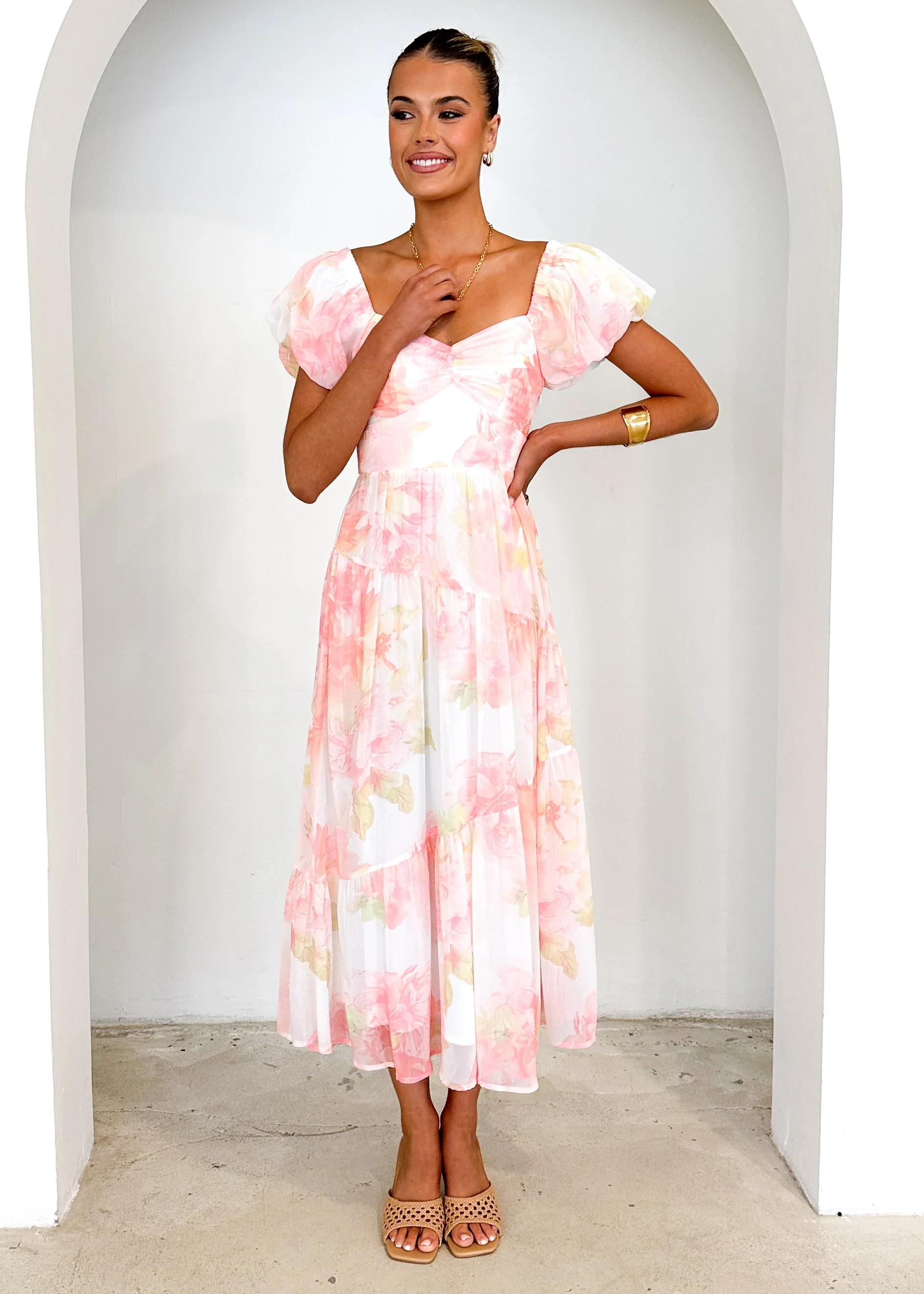 Genoa Midi Dress - Peach Floral
