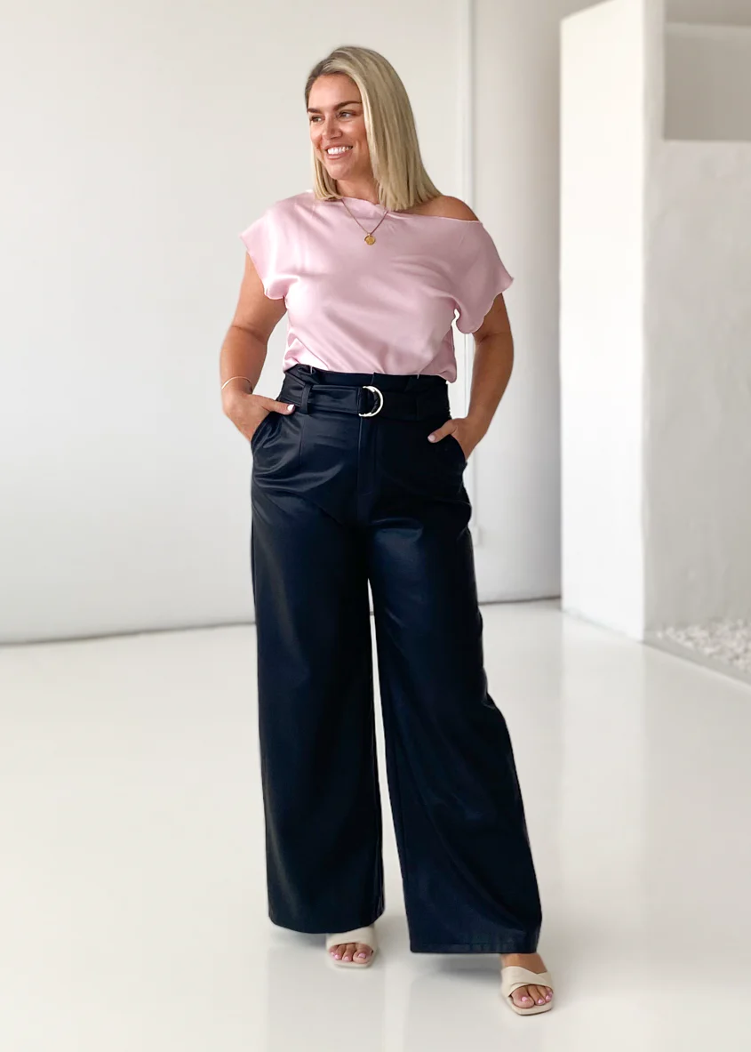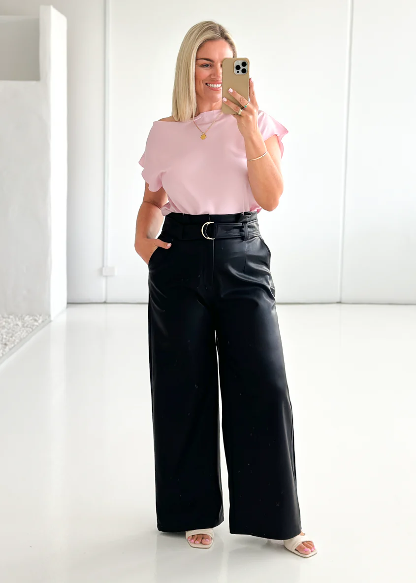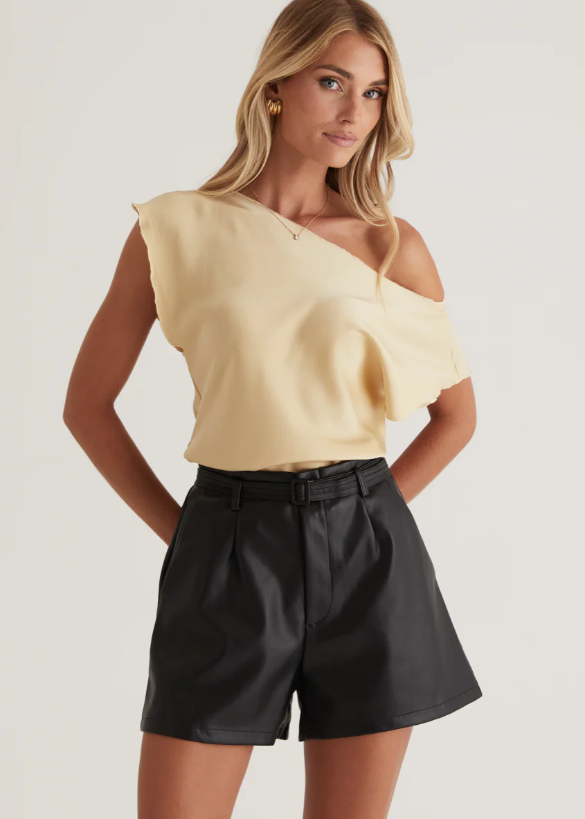 Glyda Leather Look Skirt - Black