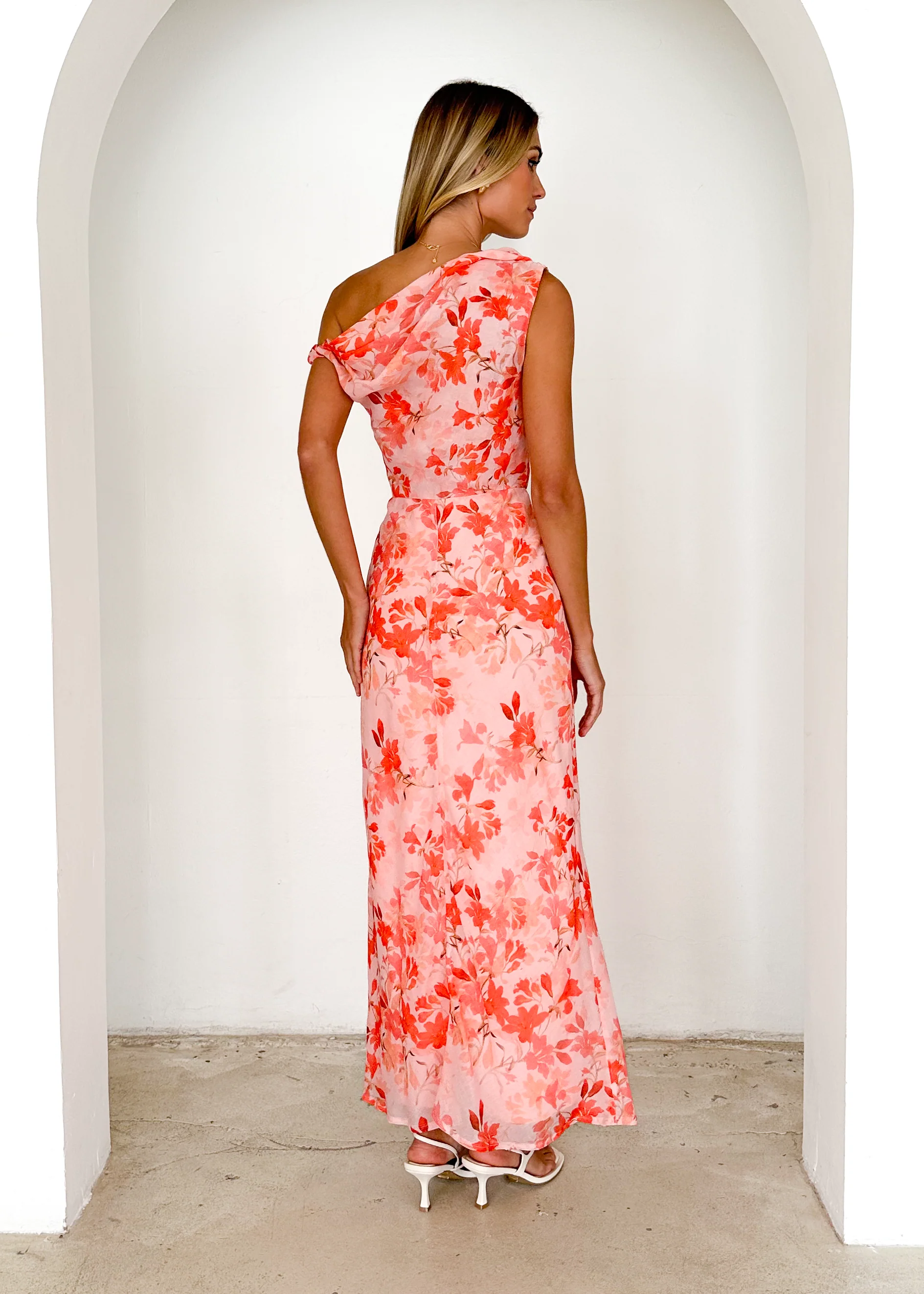 Grace One Shoulder Maxi Dress - Peach Floral