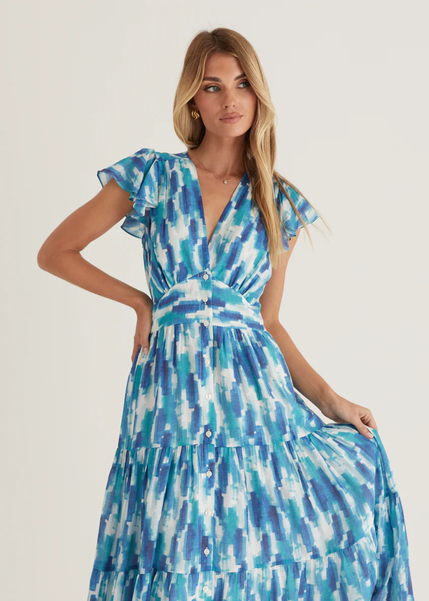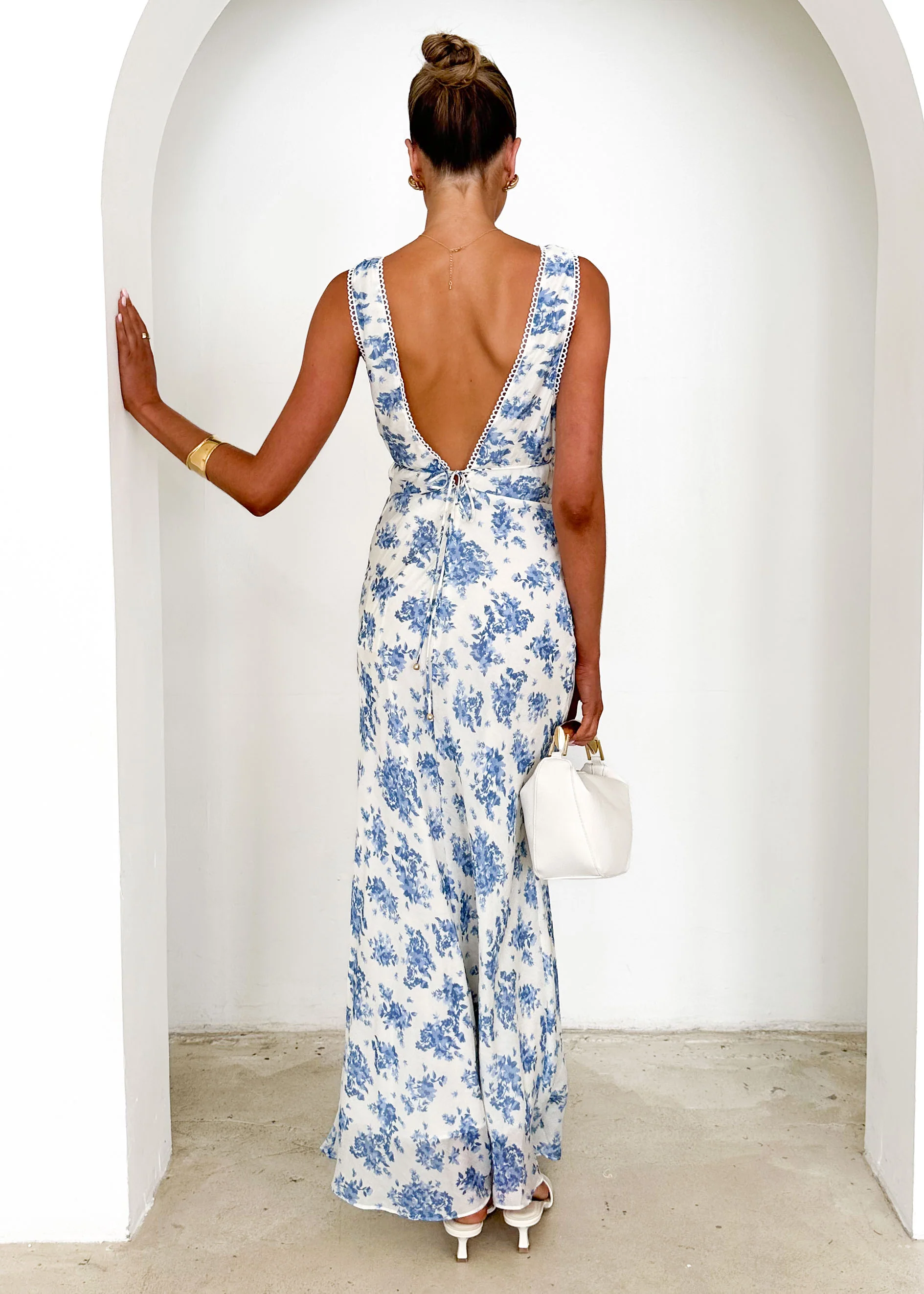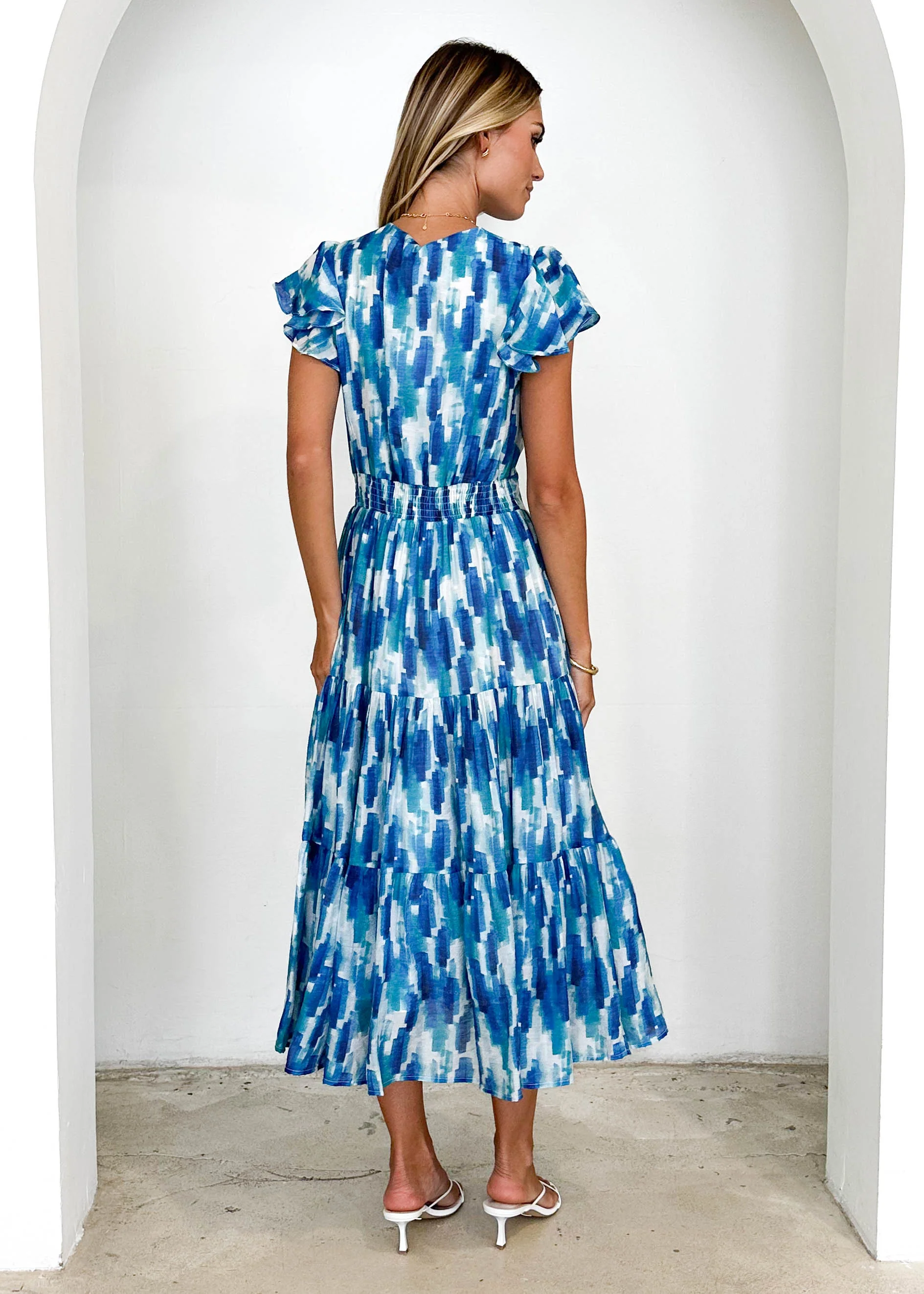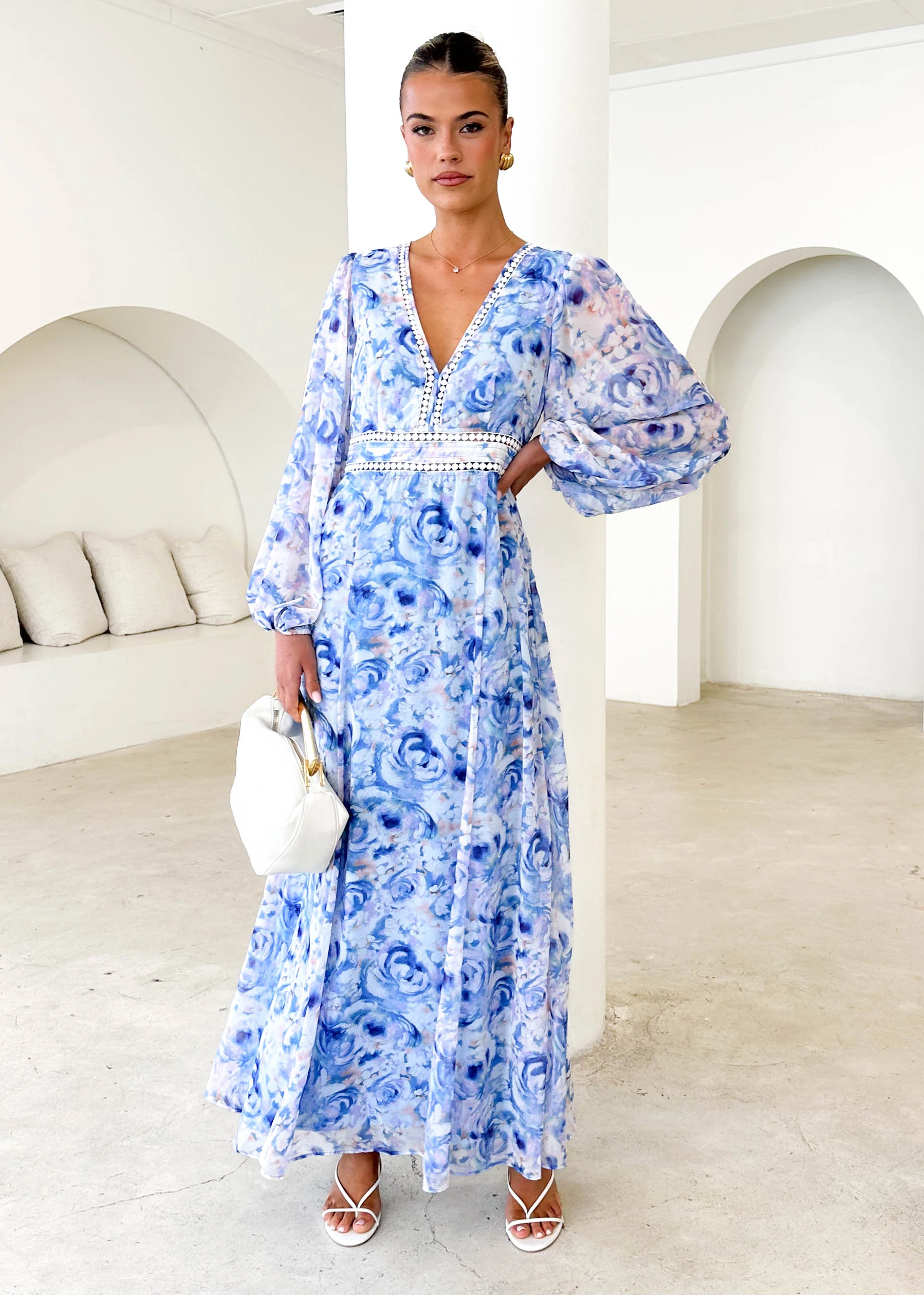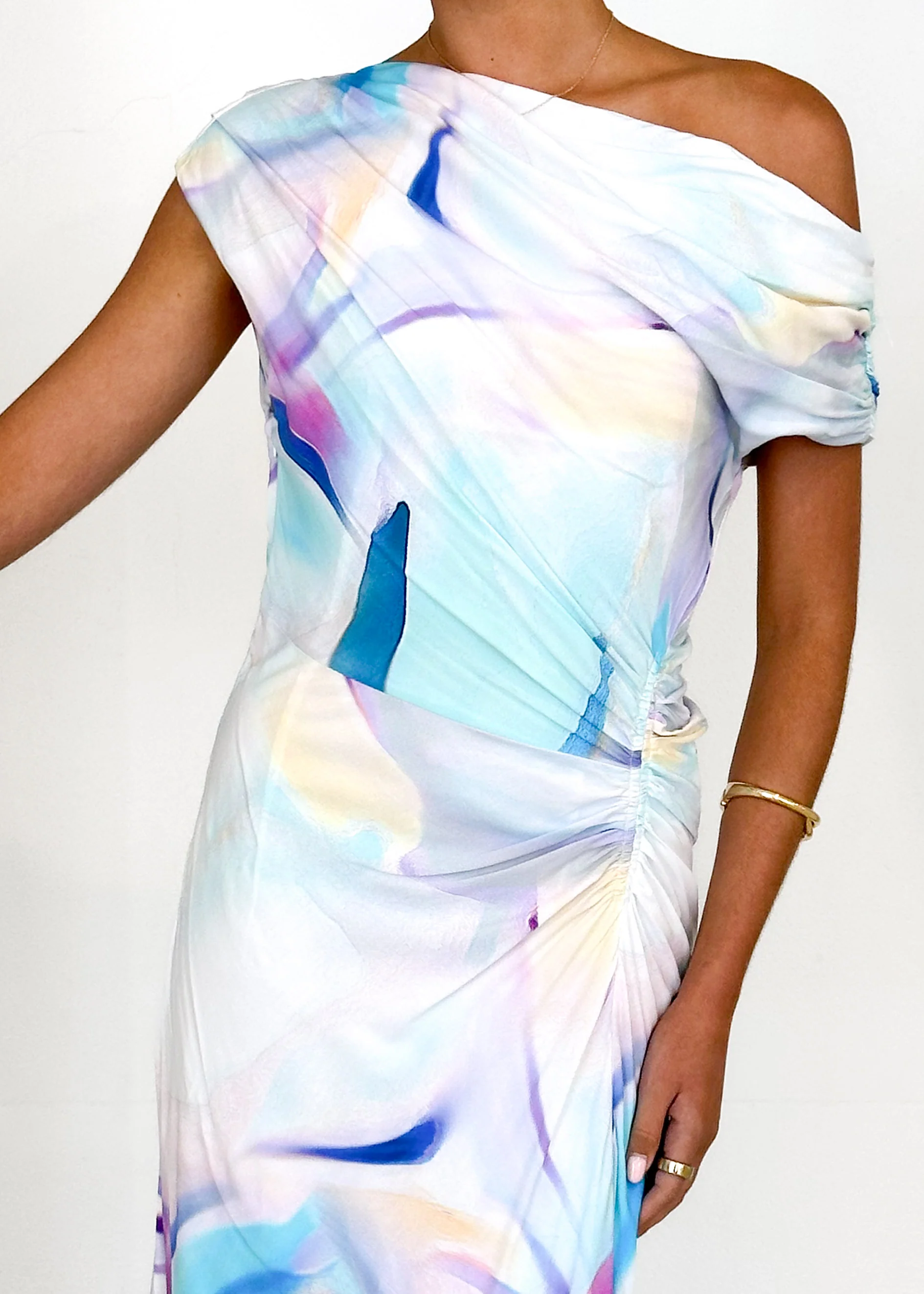 Flirtini One Shoulder Maxi Dress - Blue Swirl